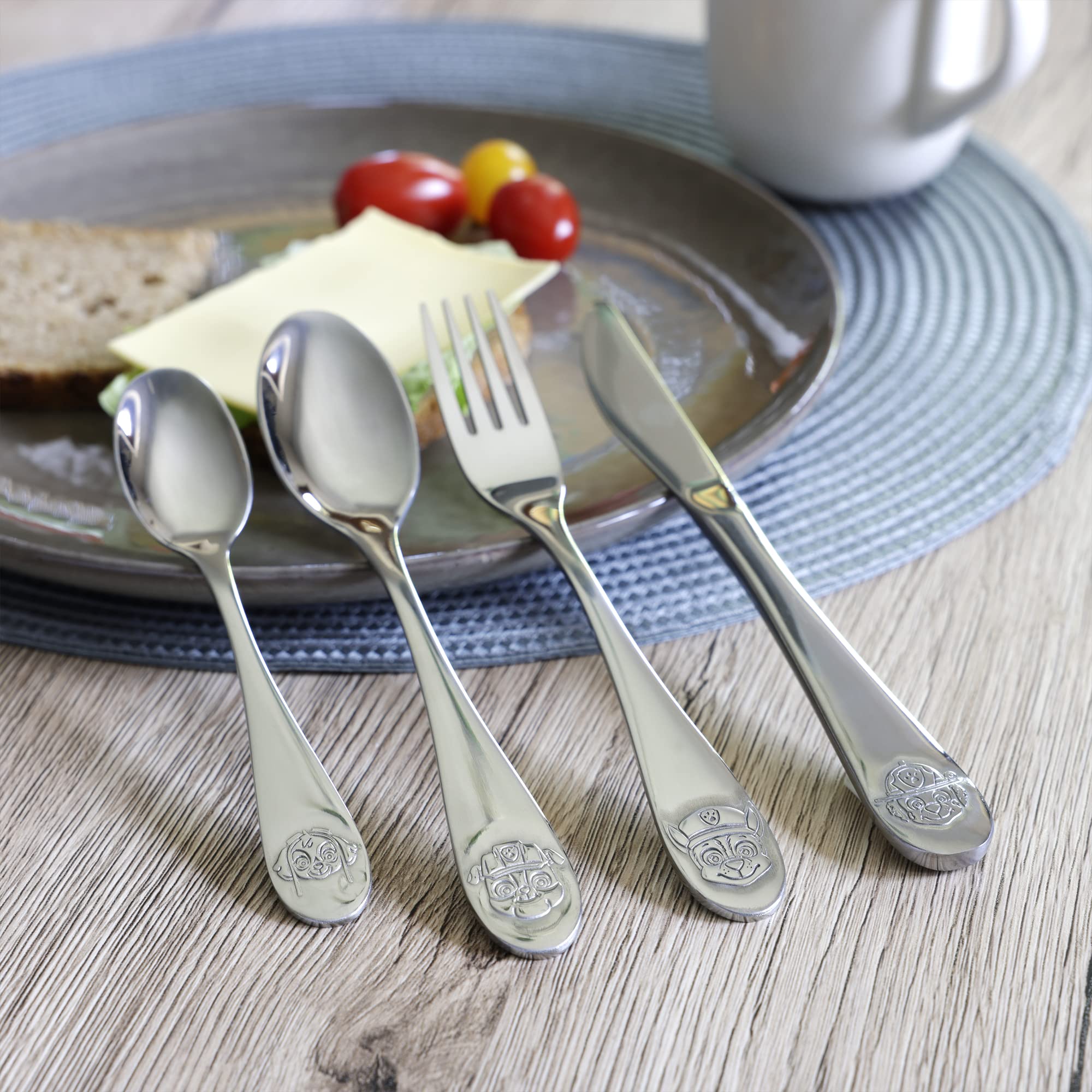 p:os Zestaw Sztućców Z Tłoczeniem Psi Patrol, 4-Częściowy Zestaw Sztućców Dla Dzieci Ze Stali Nierdzewnej, 29991049