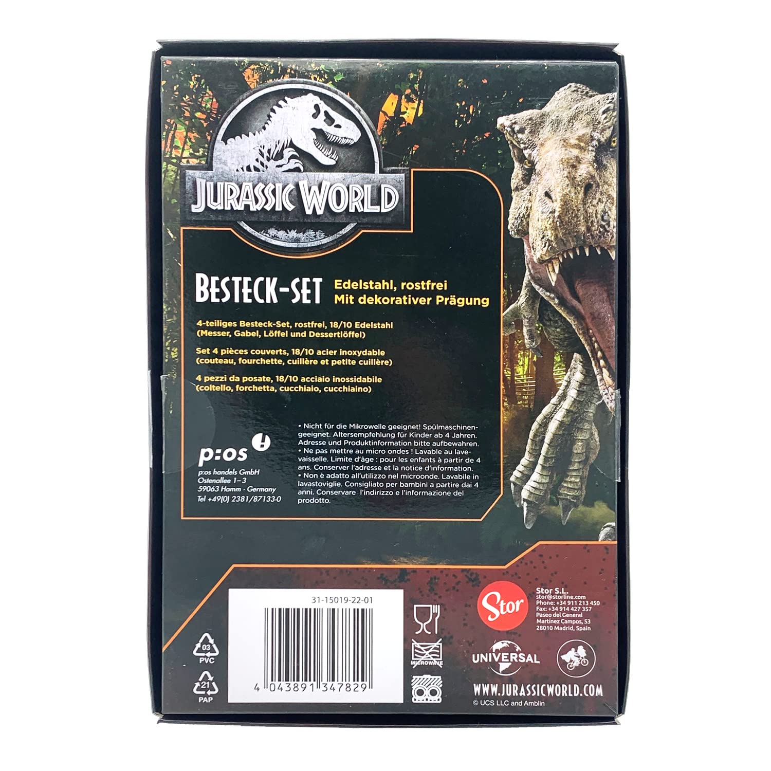 Jurassic World Zestaw Sztućców dla Dzieci, 4-Częściowy Zestaw Sztućców