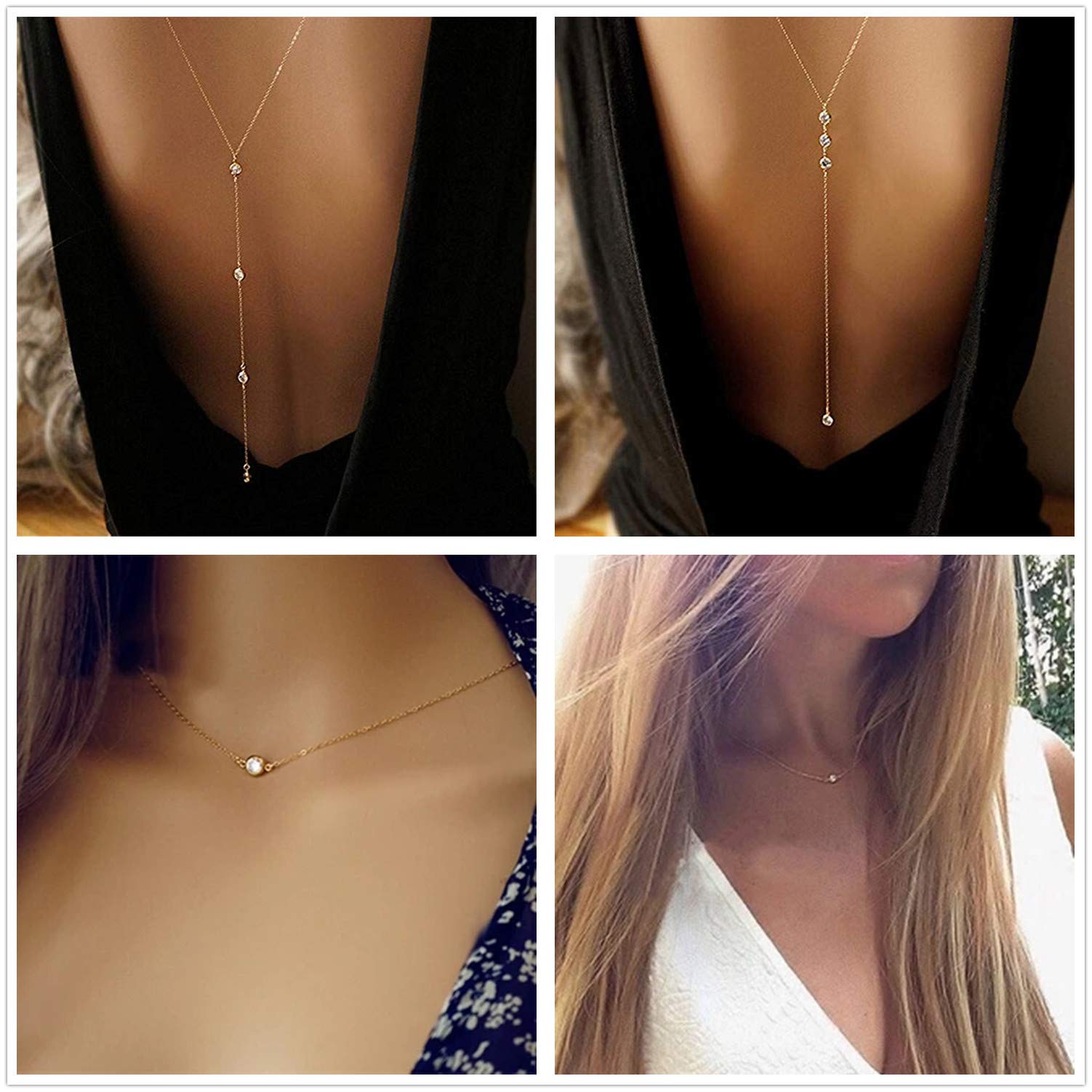 PPX 2 sztuki backless drop, naszyjnik dla panny młodej, wisiorek, vintage, stras, łańcuszek na ciało, łańcuszek na szyję, żołądź i plecy, biżuteria dl