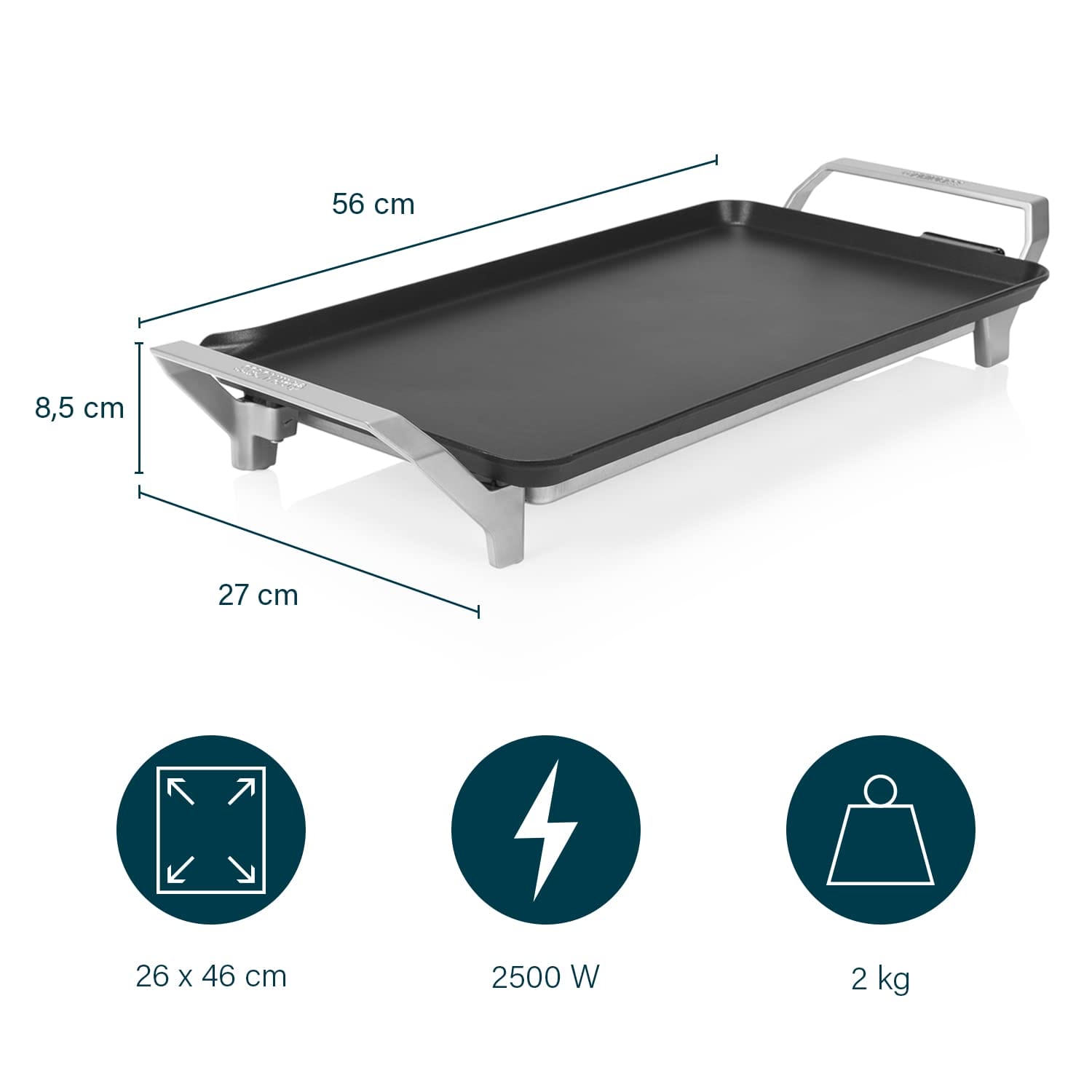 - Dank einer Leistung von 2500 Watt wird die Teppanyaki-Grillplatte sehr schnell heiß