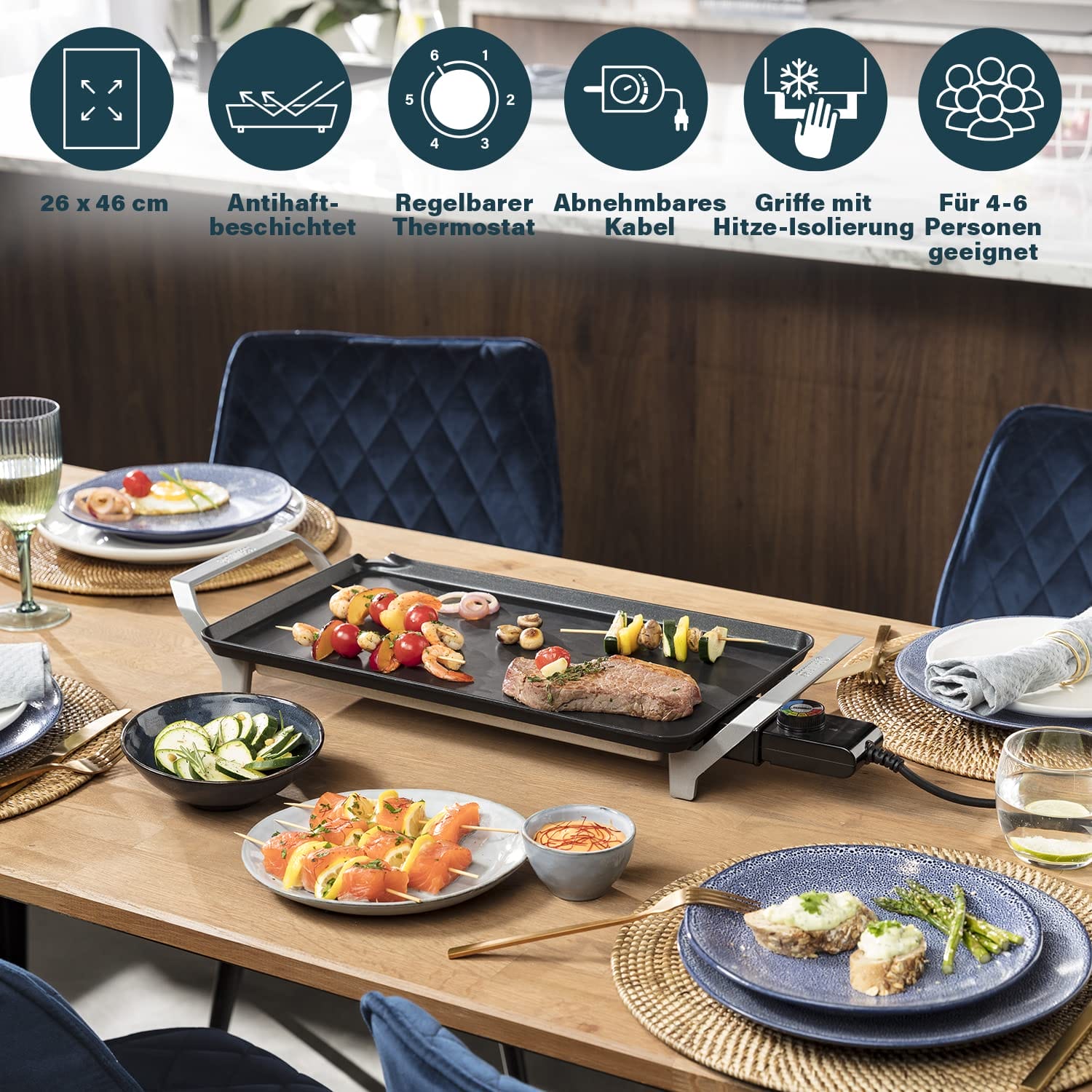 - Genießen Sie ein stilvolles Familienessen mit 4 bis 6 Personen auf der großen Bratfläche von 46×26 cm