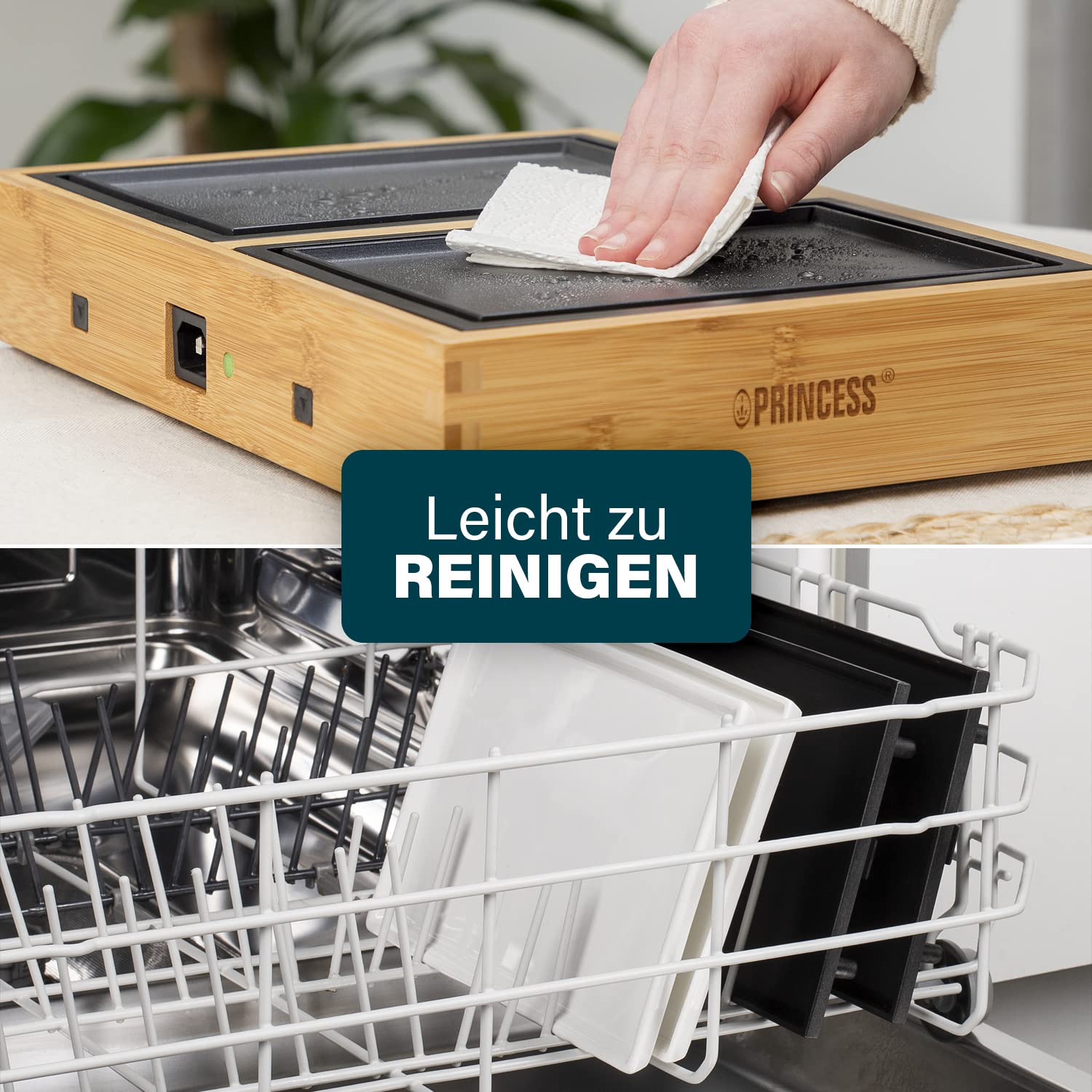 Princess 104040 Dinner4All Pure Grill Stołowy z Bambusową Obudową, Dla