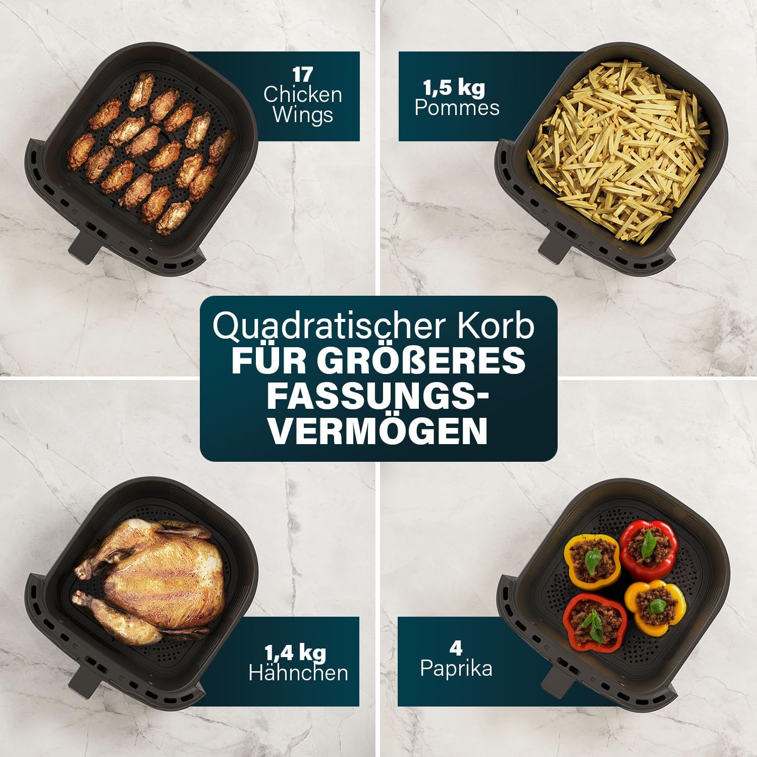 ✅ Zdrowe i smaczne: Zdrowe i smaczne gotowanie: dzięki technologii konwekcji na gorące powietrze można używać do 85% mniej tłuszczu bez utraty konwekcji lub smaku.
