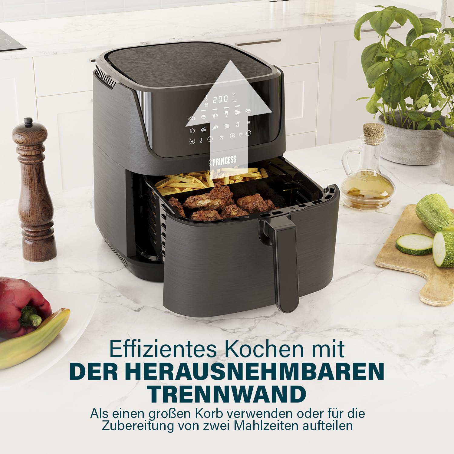 ✅ W zestawie separator:: W zestawie separator: w zestawie z przegrodą można przełożyć kosz frytkownicy bez oleju. Dzięki temu można przygotować 2 rodzaje potraw jednocześnie.