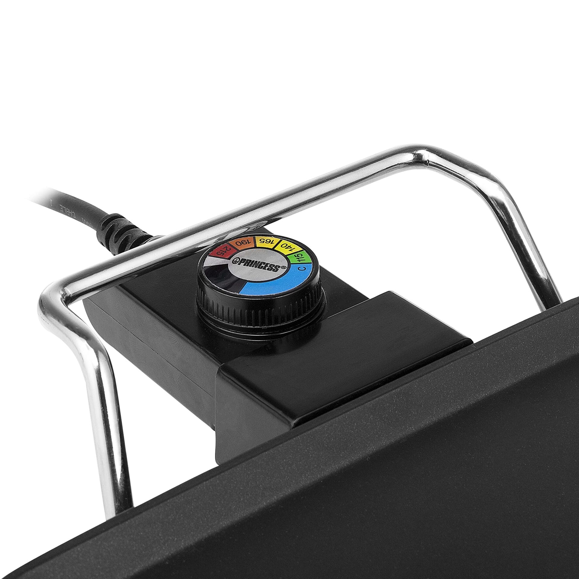 Ten produkt marki Princess jest dostępny w kolorze czarnym, co nadaje mu elegancki wygląd. Kontrolka świetlna informuje o stanie gotowości urządzenia do grillowania.