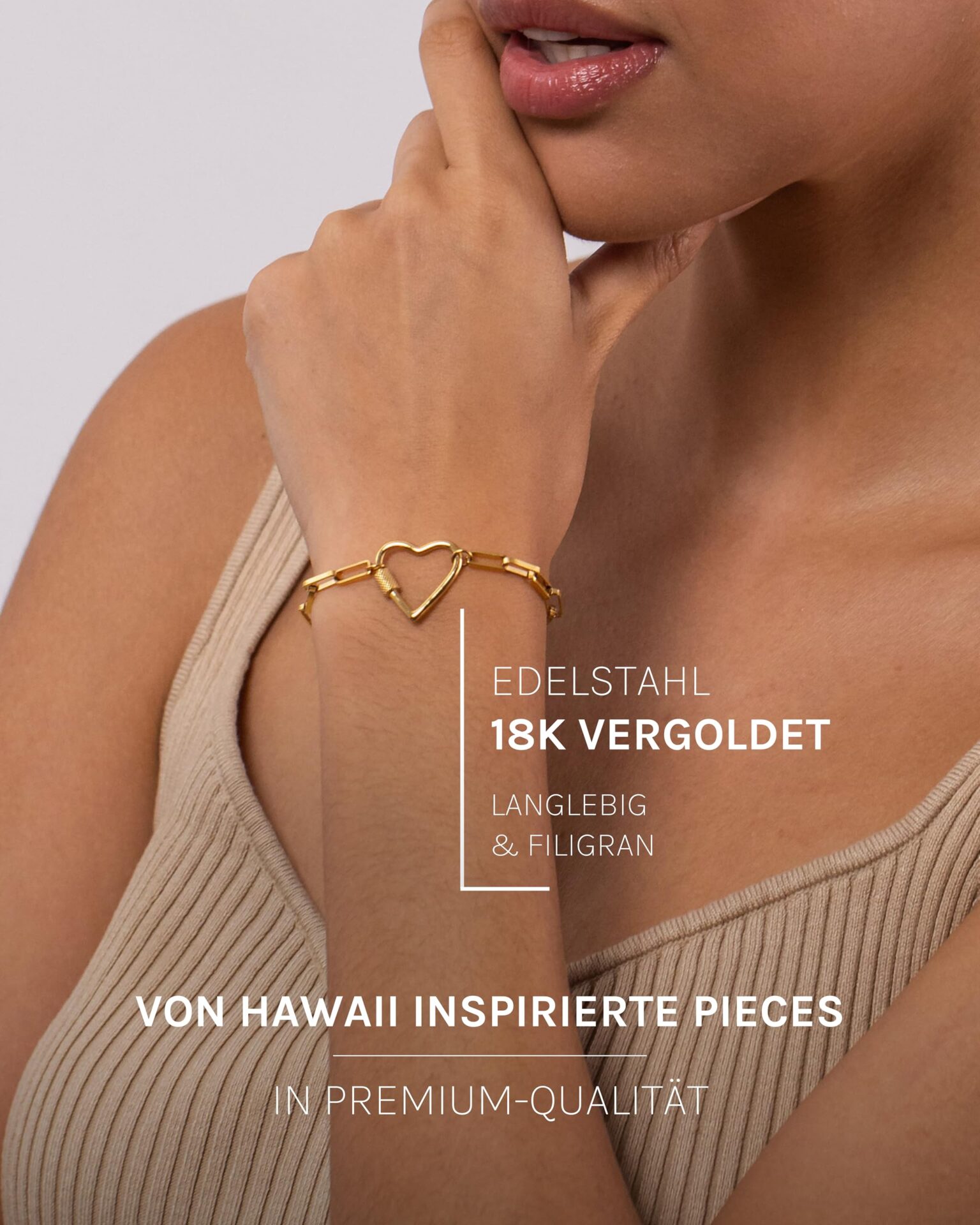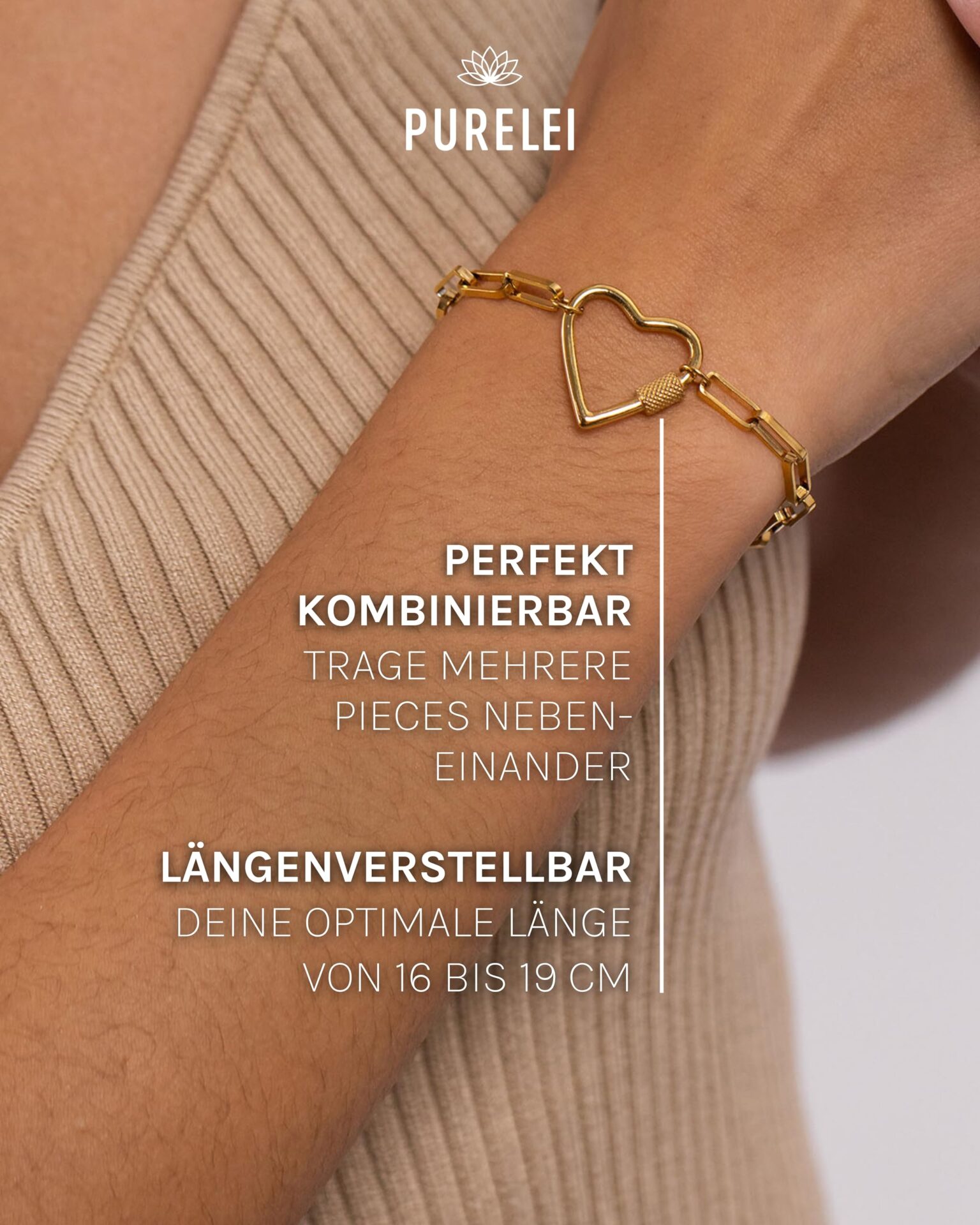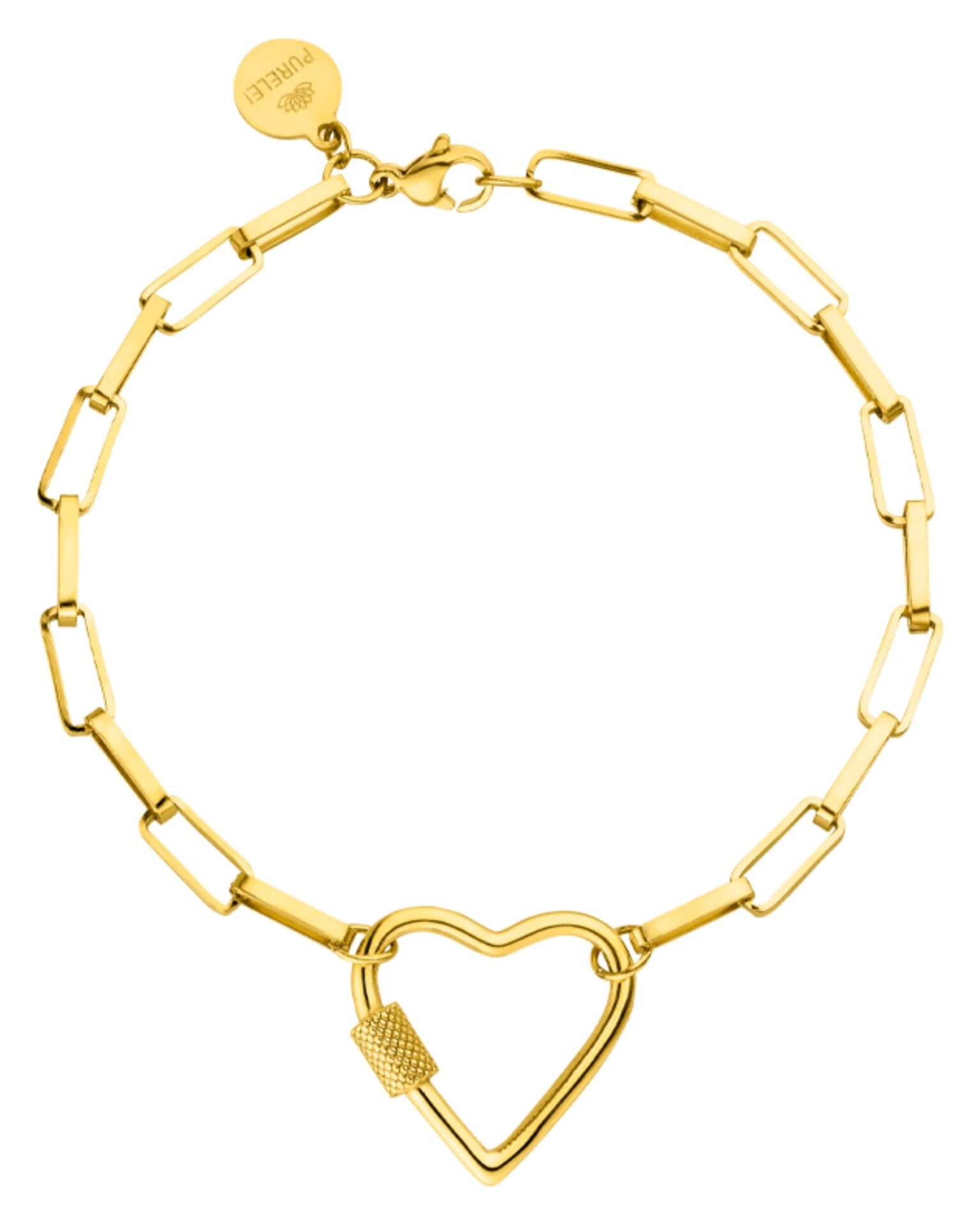 Purelei® Palekana Heart bransoletka, damska bransoletka z trwałej stali nierdzewnej, wodoodporna biżuteria z zawieszką w kształcie serca, maks. 19 cm długości, regulowana