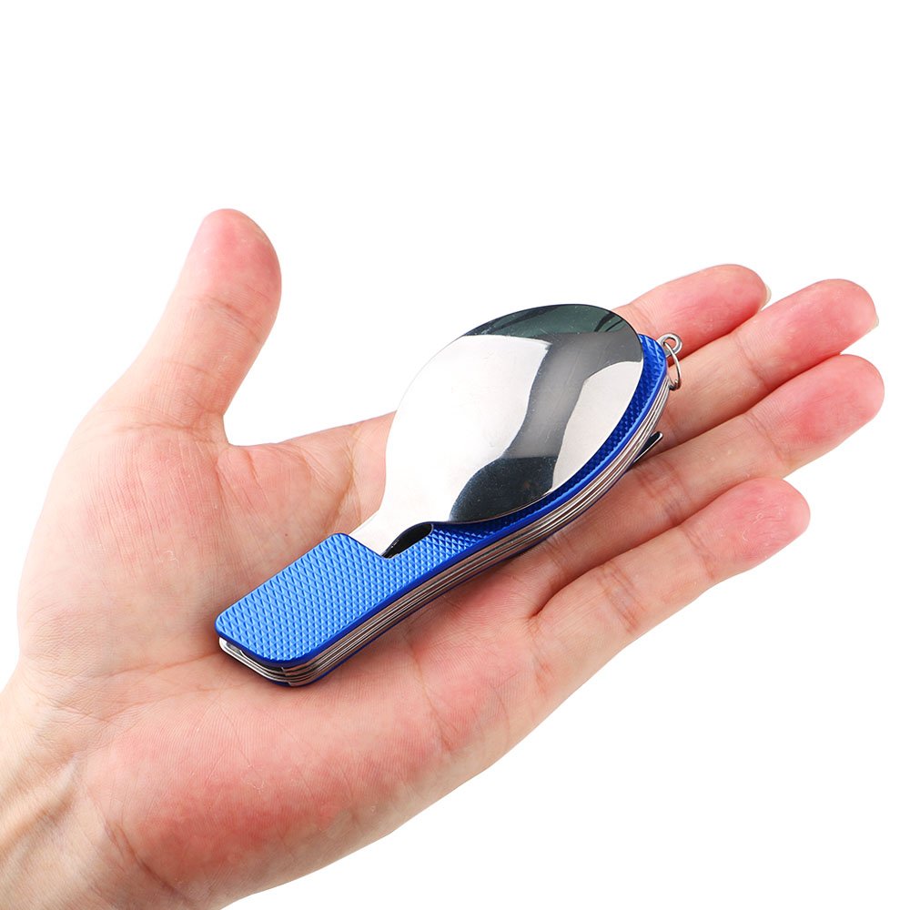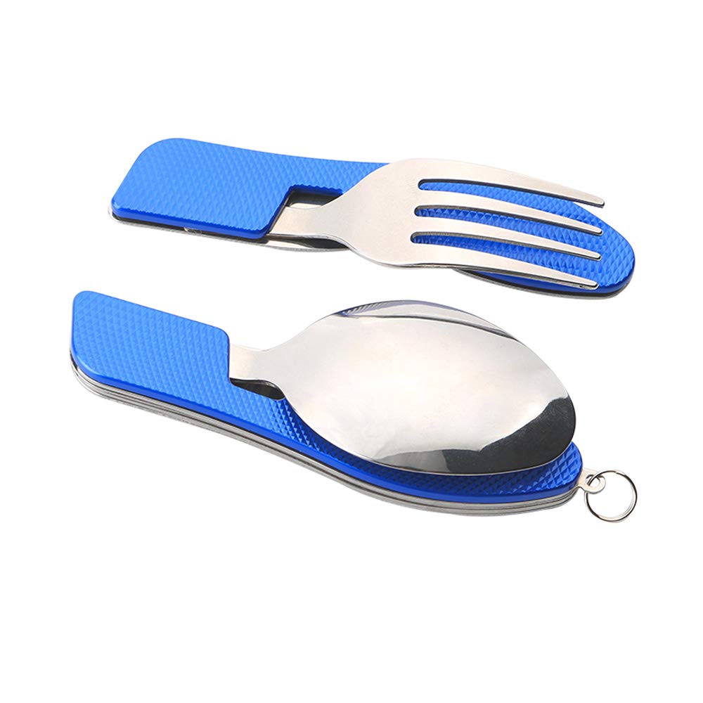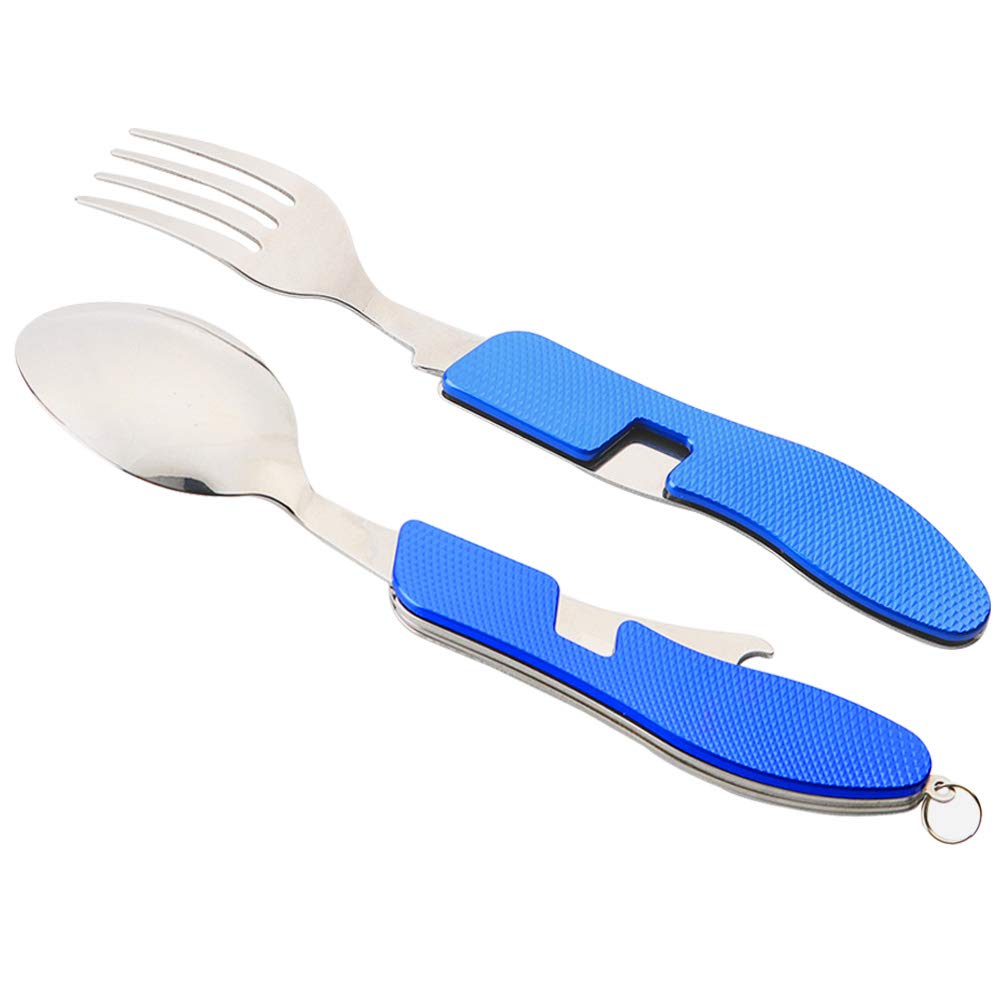 2 szt. sztućców kempingowych 4 w 1, składane sztućce 4 w 1, stal nierdzewna, zestaw sztućców kempingowych, nóż, widelec, łyżka, otwieracz do butelek (niebieski)