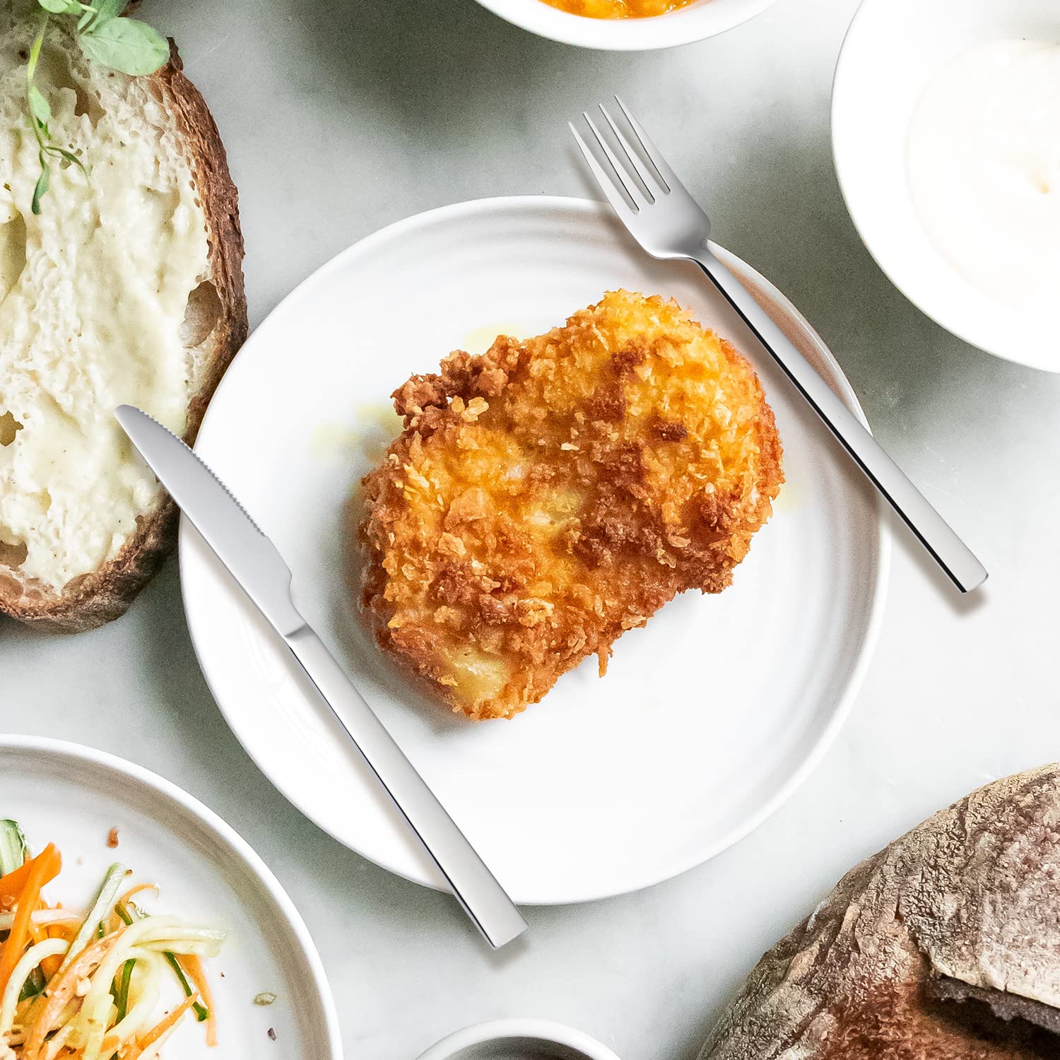 QUCHER wyróżnia się także atrakcyjnym designem, który doskonale komponuje się z różnorodnymi stylami nakrycia stołu, od klasycznego po nowoczesny. To sprawia, że zestaw jest nie tylko praktyczny, ale także estetyczny, co czyni go idealnym wyborem dla osób ceniących sobie zarówno funkcjonalność, jak i styl.