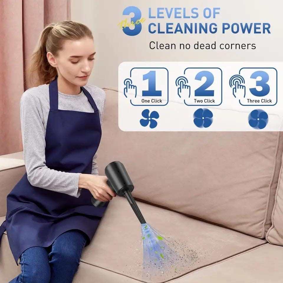 – Multifunkcyjne głębokie czyszczenie: Ten odkurzacz posiada silną siłę wiatru do 91000RPM i jest wyposażony w 4 dysze, 2 rurki szczotkowe i 1 ssawkę, aby dokładnie czyścić trudno dostępne miejsca, takie jak komputery, sofy, samochody, urządzenia elektroniczne itp., w zależności od Twoich potrzeb.