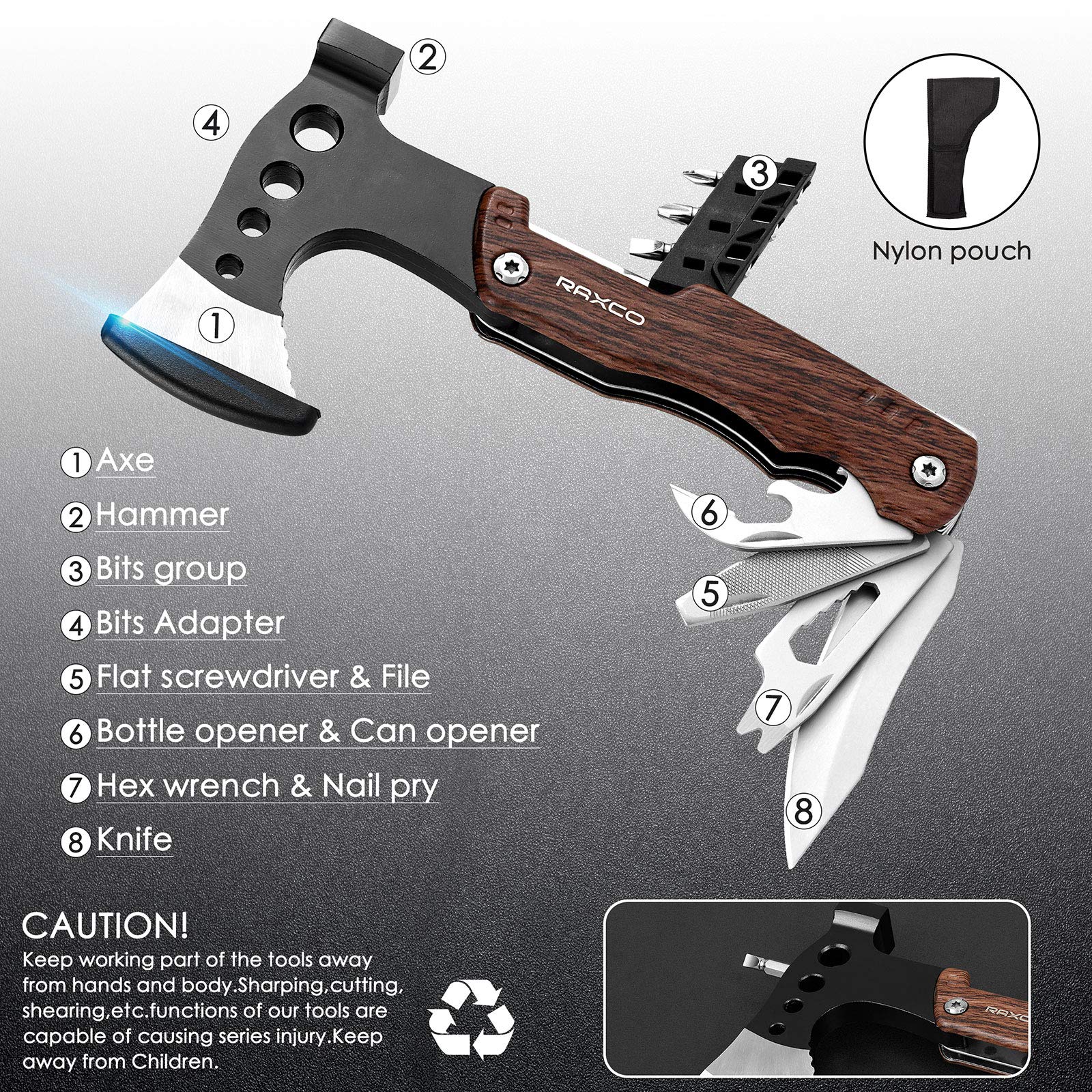 Raxco Siekiera survivalowa – siekiera wielofunkcyjna, 8 w 1, siekiera ręczna, do biwakowania na świeżym powietrzu i na prezenty dla mężczyzn