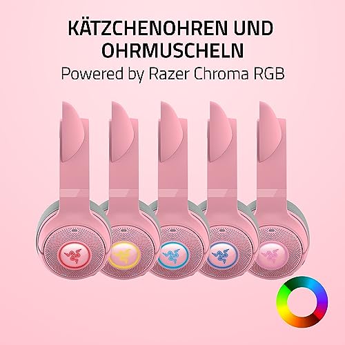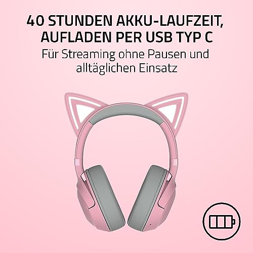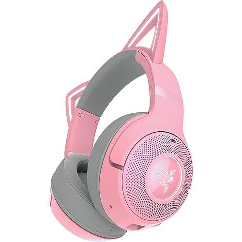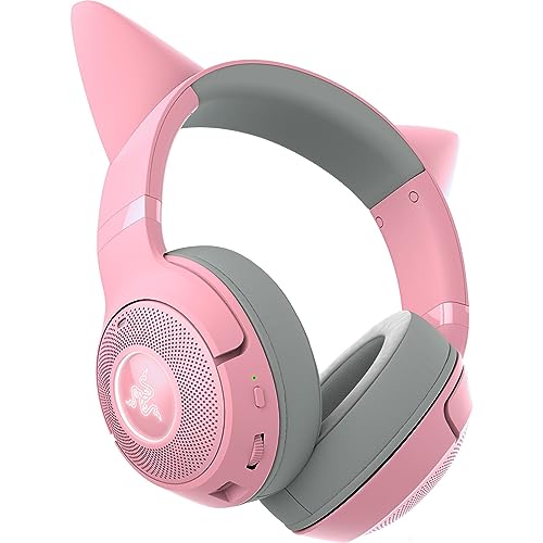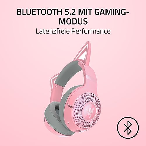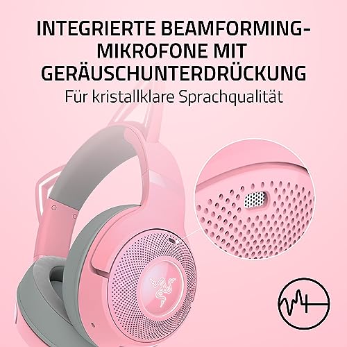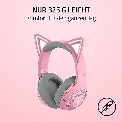 Razer Kraken Kitty V2 BT – bezprzewodowy zestaw słuchawkowy Bluetooth RGB z uszami Kitty (Bluetooth 5.2, sterowniki 40mm, zintegrowane mikrofony z funkcj kształtowania wiązki) Quartz