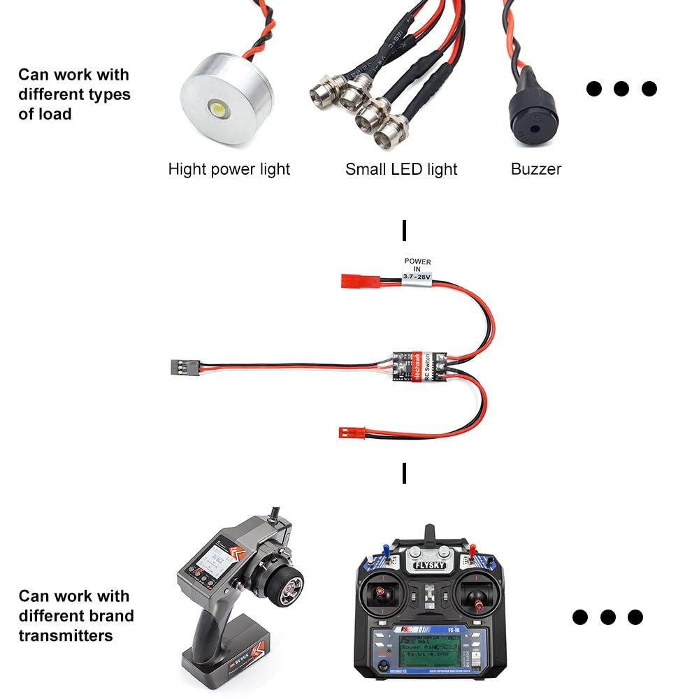 RC zdalnie sterowany elektroniczny przekaźnik włączania/wyłączania AUX do samochodów ciężarowych, łodzi, LED Light Drone (8A) to innowacyjne urządzenie, które umożliwia zdalne sterowanie włączaniem i wyłączaniem dodatkowych urządzeń elektrycznych w pojazdach ciężarowych, łodziach oraz dronach.
