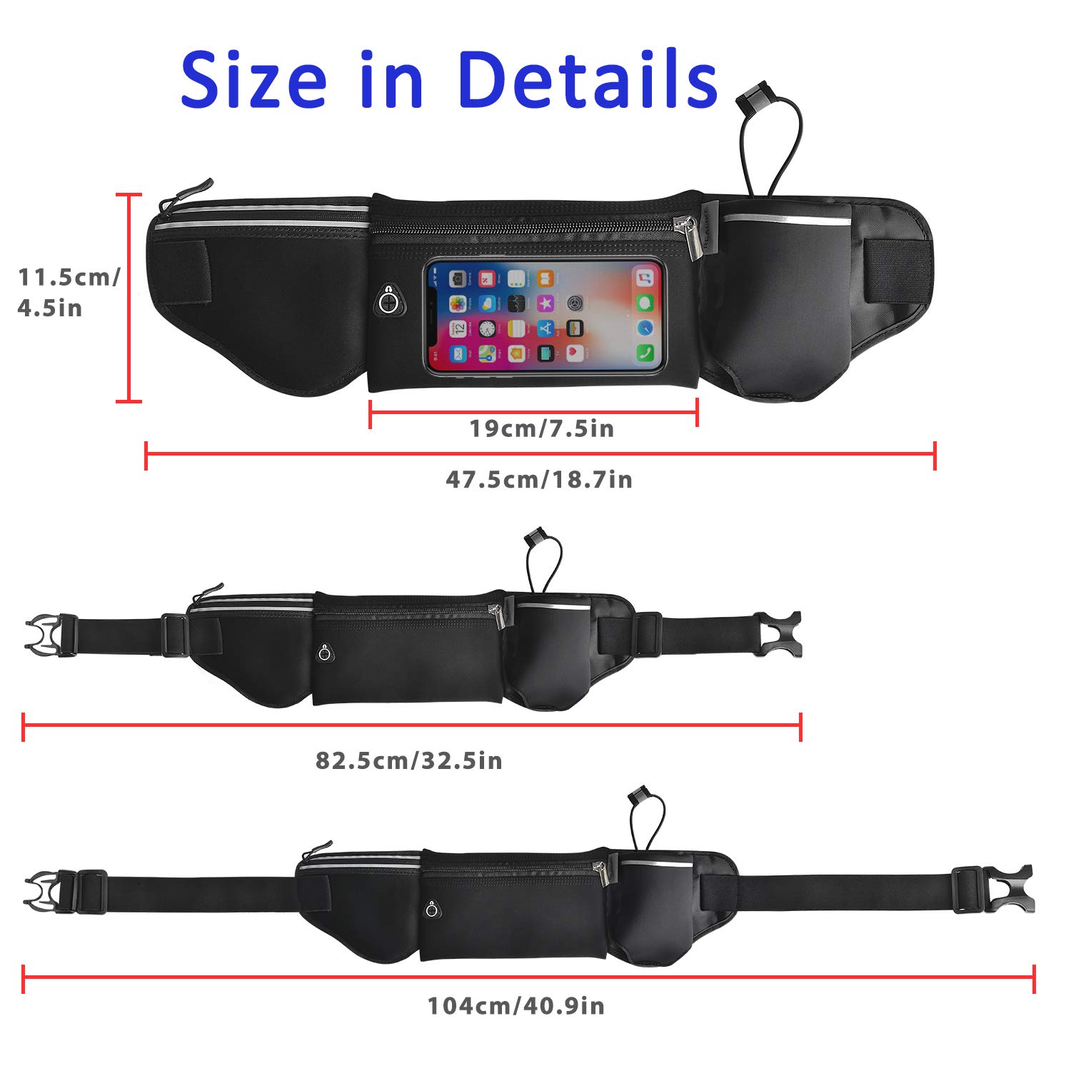 • Pełna regulacja: Regulowany, elastyczny pasek idealnie pasuje do talii od 80 do 120 cm, elastyczne paski z klipsem na klamrę mogą się zużywać z upływem czasu. Srebrne paski odblaskowe na kieszeni i paskach do uchwytów na butelki zapewniają również bezpieczeństwo w ruchu w nocy. UWAGA DOTYCZĄCA DOSTOSUJĄCA DOSTĘPNOŚĆ DO 7 cm długości.