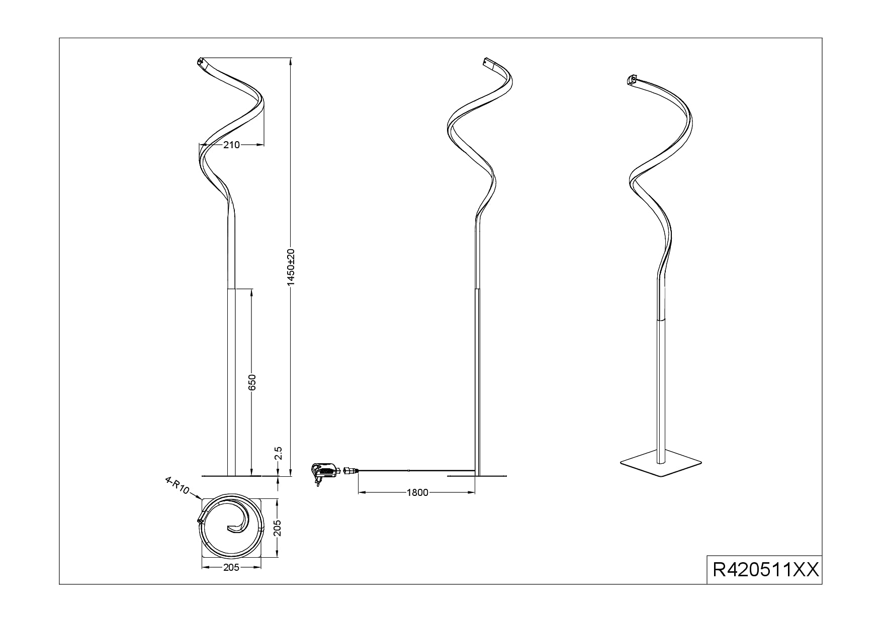 Reality Leuchten Course Lampa Podłogowa, Czarny, ‎20.5 x 20.5 x 145 cm
