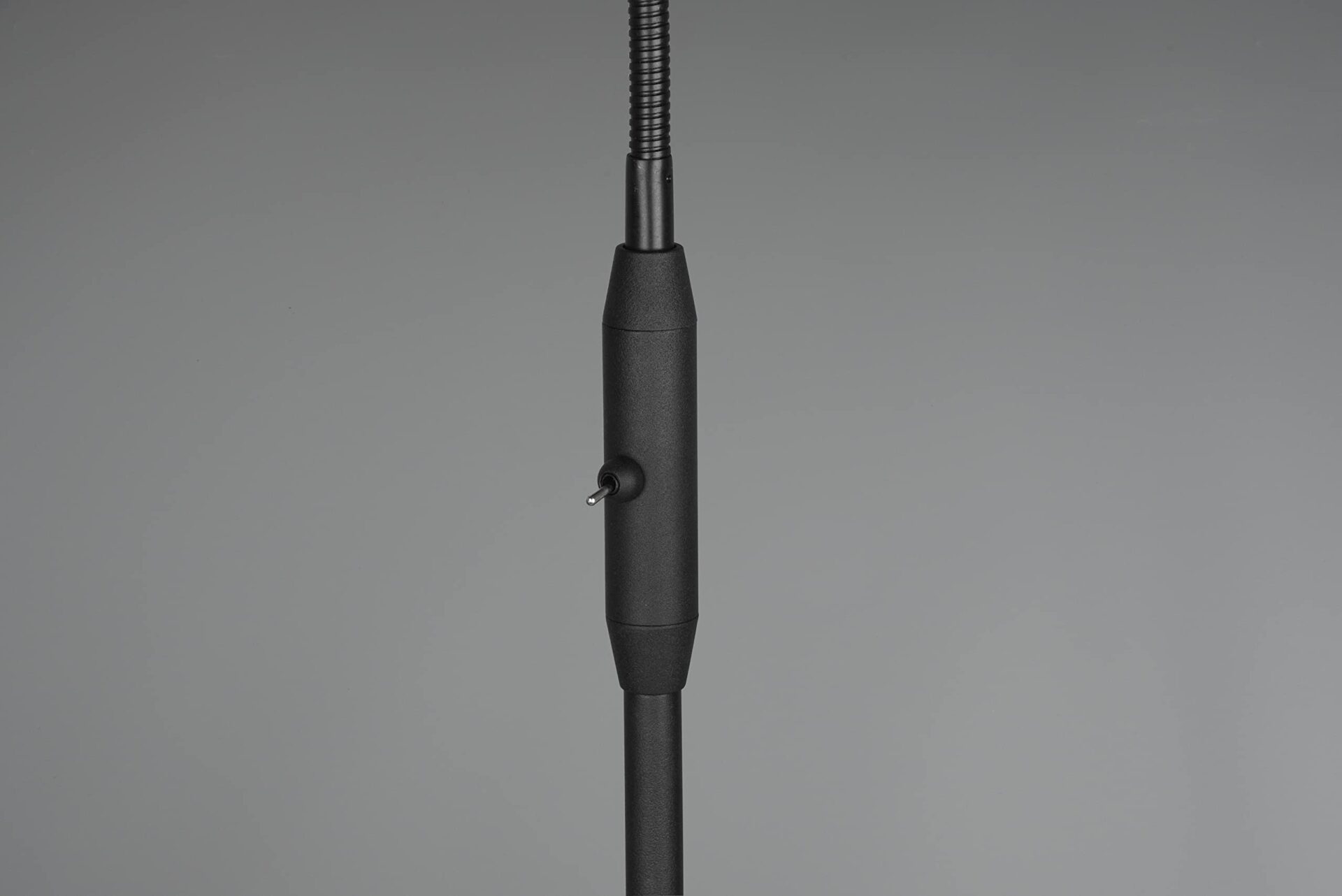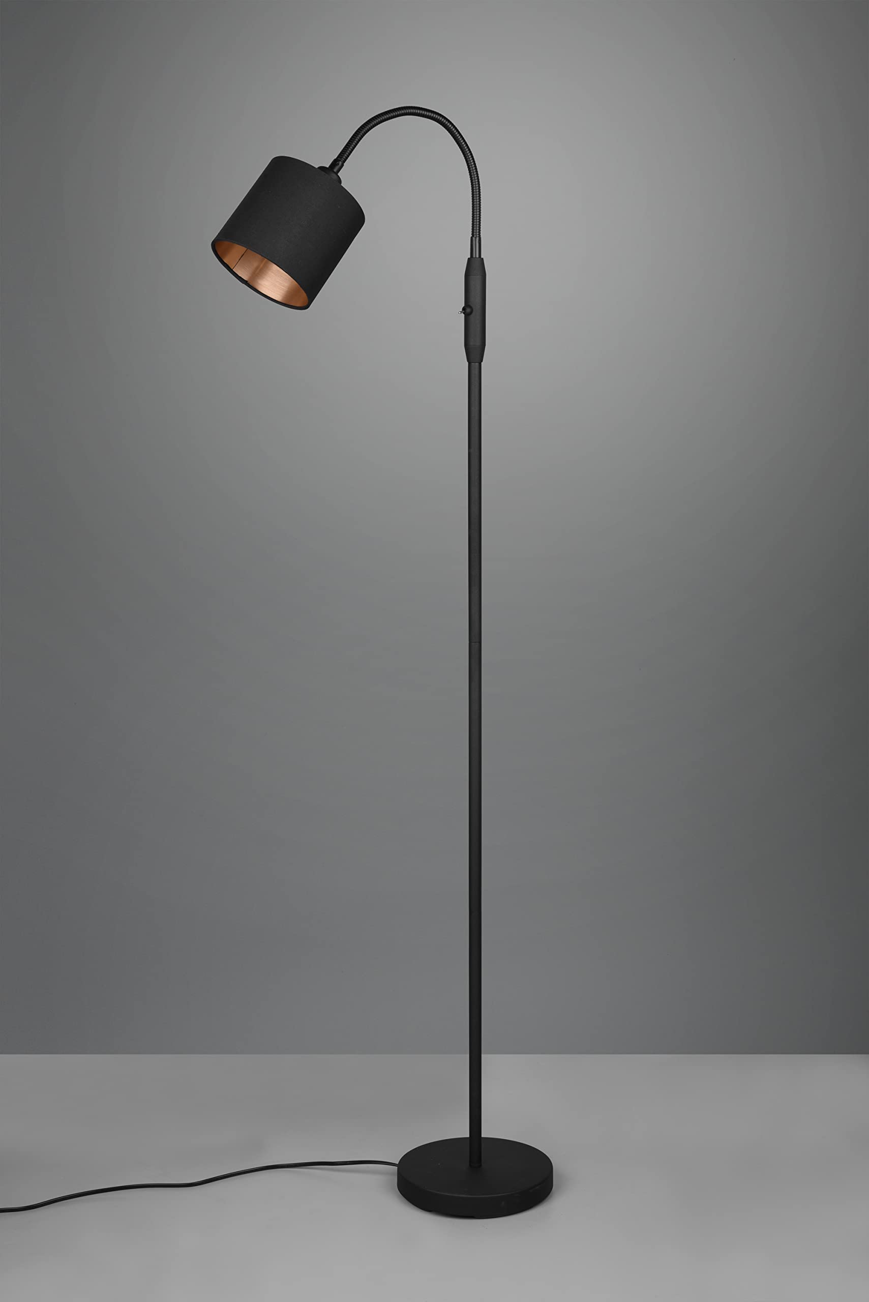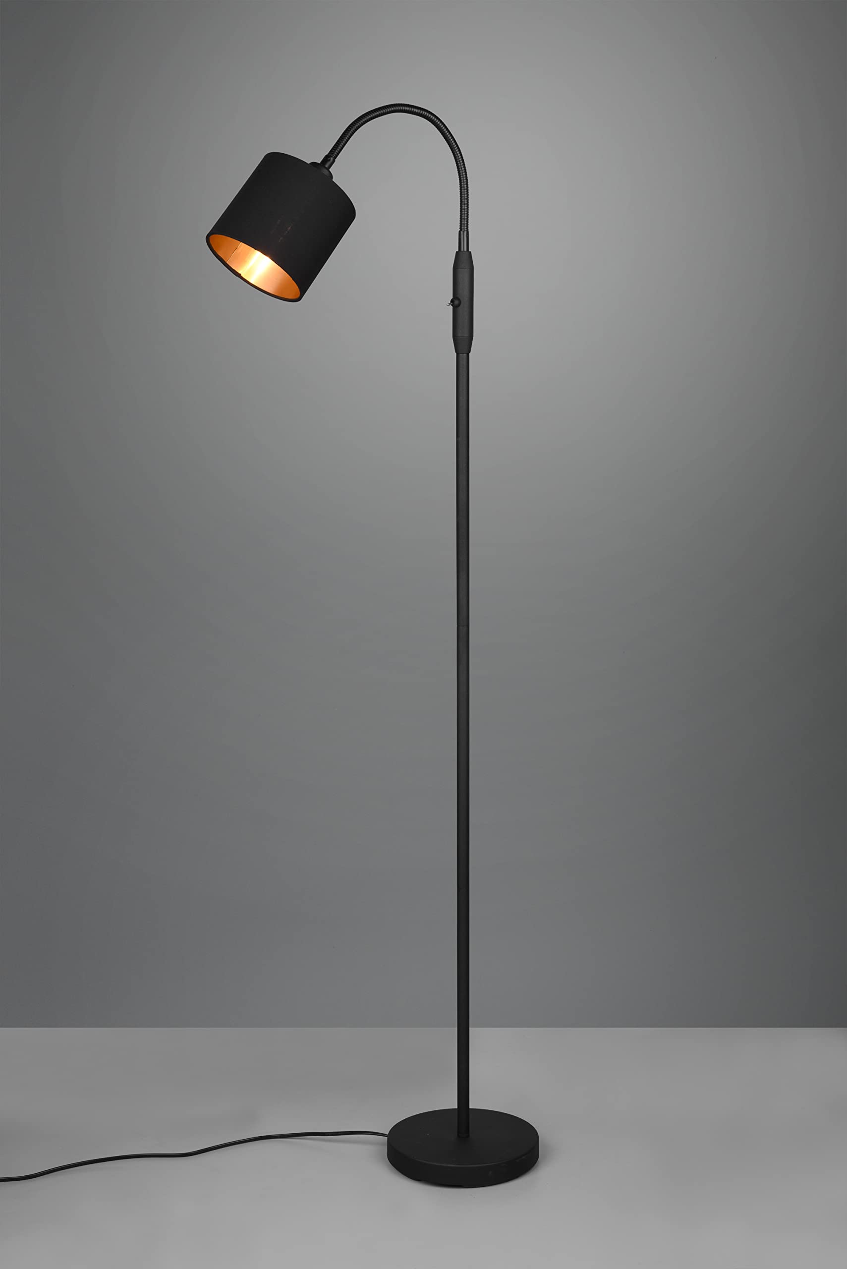 ✅ Lampa stojąca Tommy: Lampa stojąca Tommy 1-punktowa w metalu czarna matowa z abażurem z materiału w kolorze czarnym/złotym