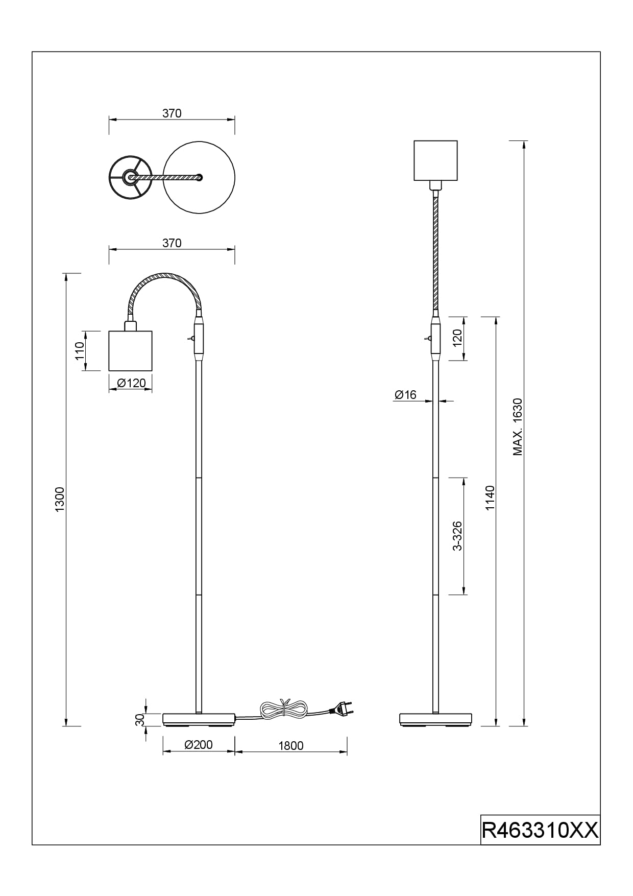 ✅ Jeśli klosz jest: Jeśli klosz jest skierowany ku górze, lampa ma wysokość 163 cm