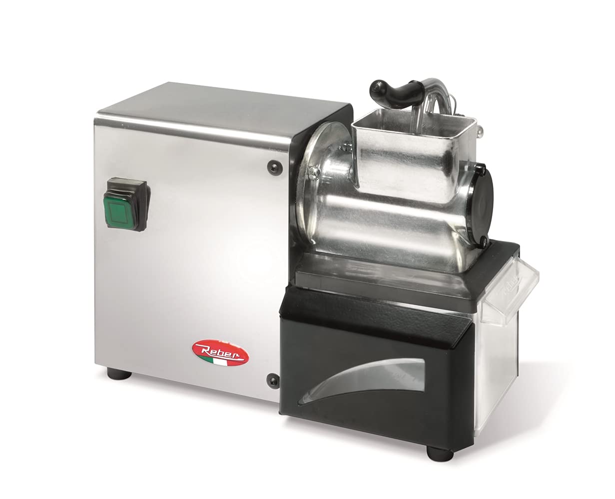Reber Nr 10053N to tarka elektryczna, która zapewnia szybkie i skuteczne rozdrabnianie składników spożywczych. Wykonana z aluminium i stali, jest nie tylko trwała, ale także elegancka w designie w kolorze czarno-szarym. Dzięki mocy 200 W, tarka ta gwarantuje efektywne i precyzyjne krojenie, siekanie i tarcie różnych produktów.