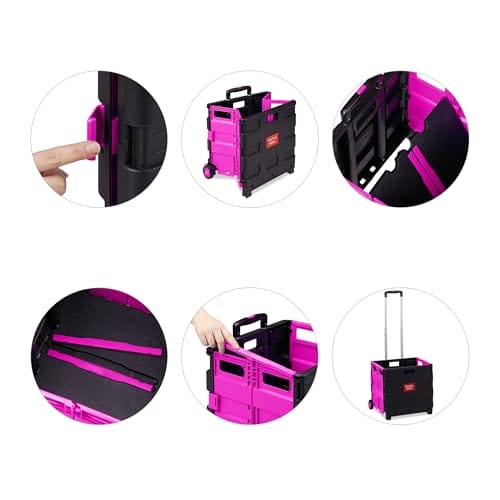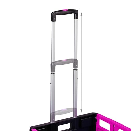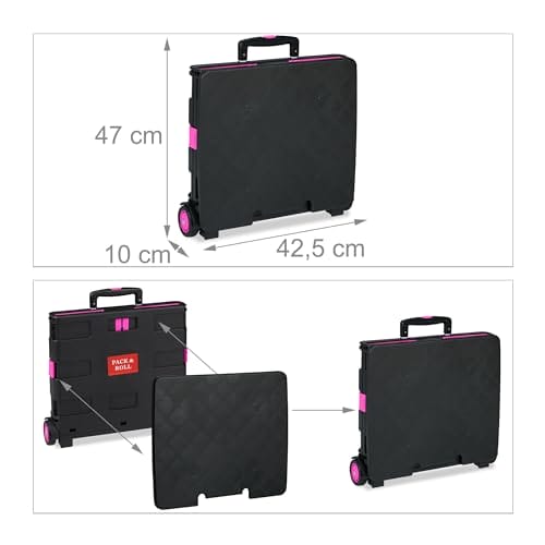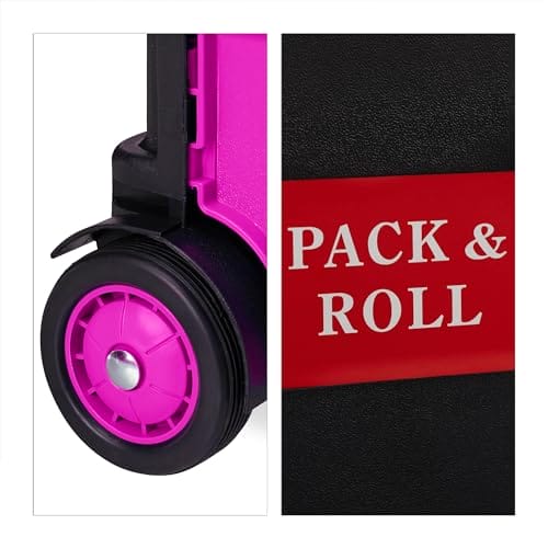 • Praktyczne: różowo-czarne składane pudełko z 2 kółkami przenosi obciążenie do 35 kg – na zakupy oszczędzające plecy