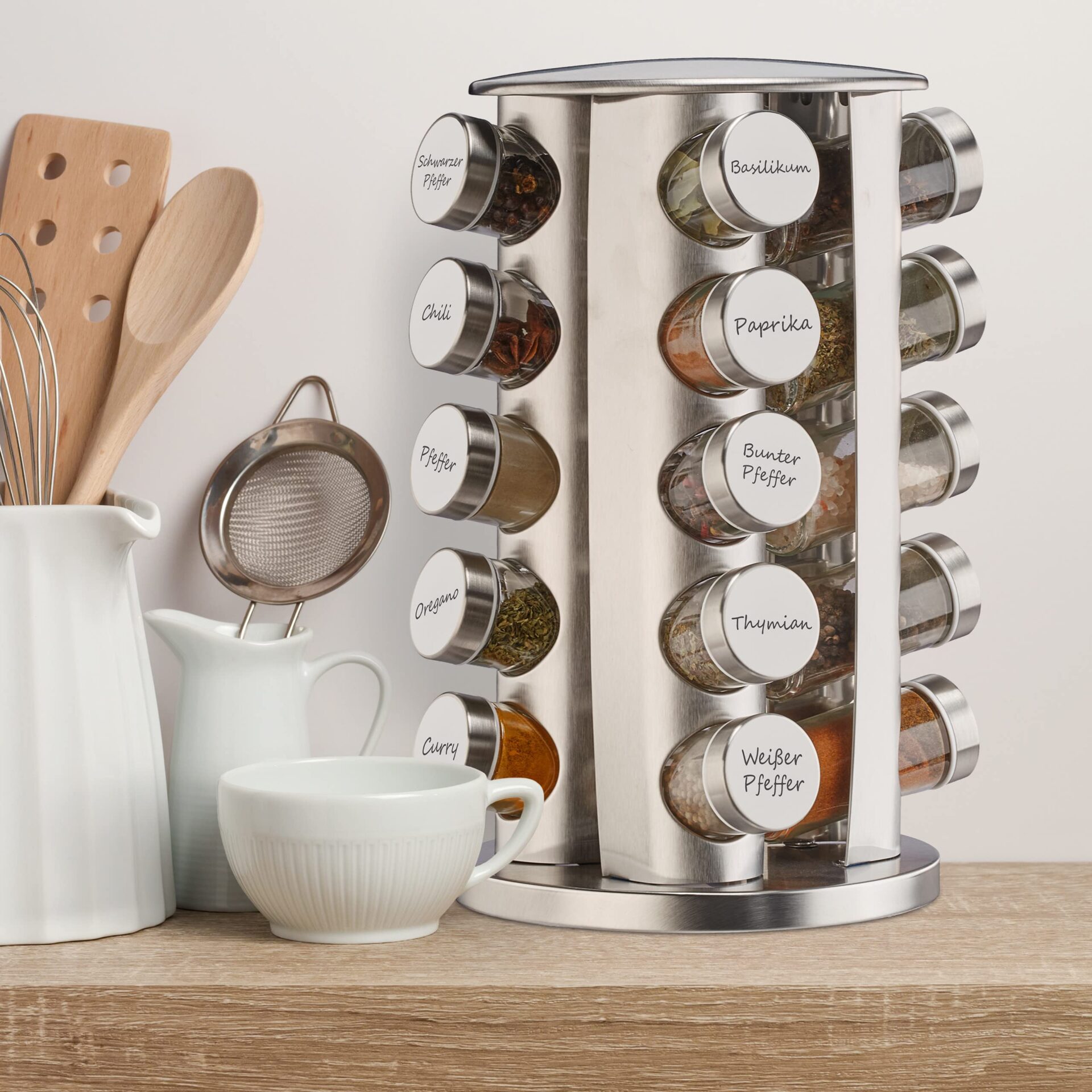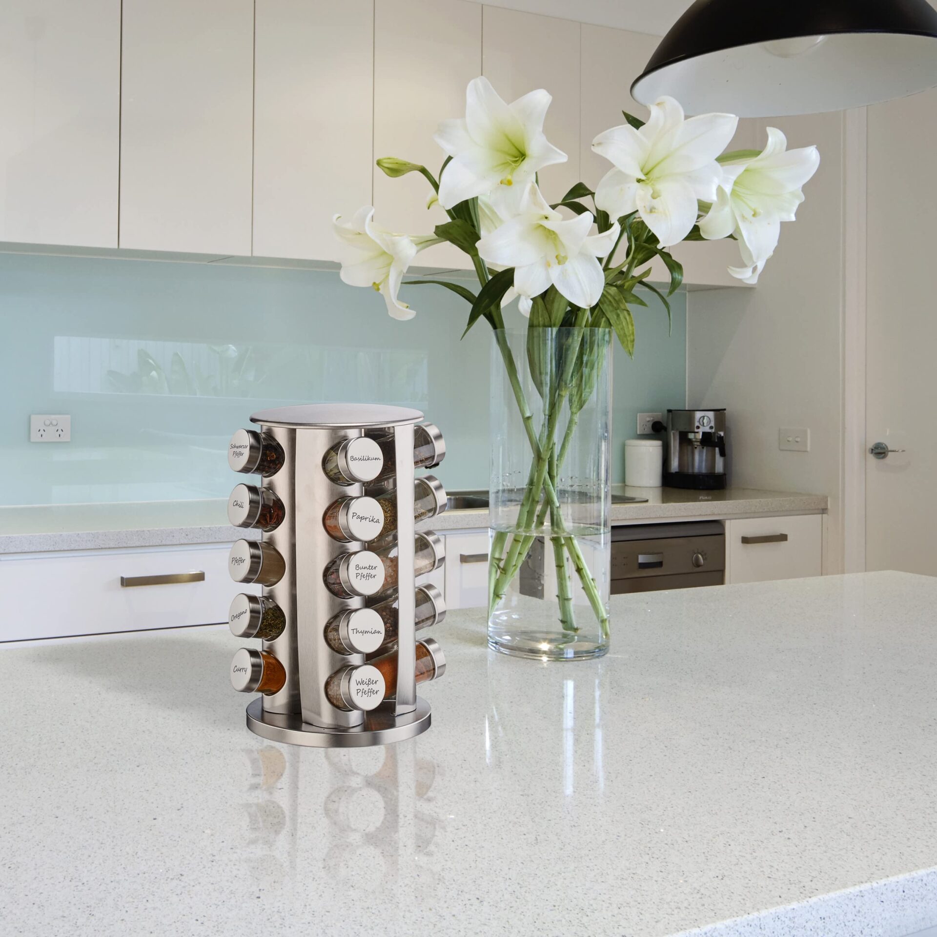 Karuzela na przyprawy od Relaxdays zrobiła furorę dzięki swojej funkcjonalności i estetyce. W skład zestawu wchodzi 20 szklanych pojemników o pojemności 100 ml, co pozwala na przechowywanie różnorodnych przypraw. Ciekawym dodatkiem są również 40 etykiet, które ułatwiają organizację. Dzięki nim każda przyprawa będzie na wyciągnięcie ręki, co znacznie ułatwia gotowanie i eksperymentowanie z nowymi smakami.