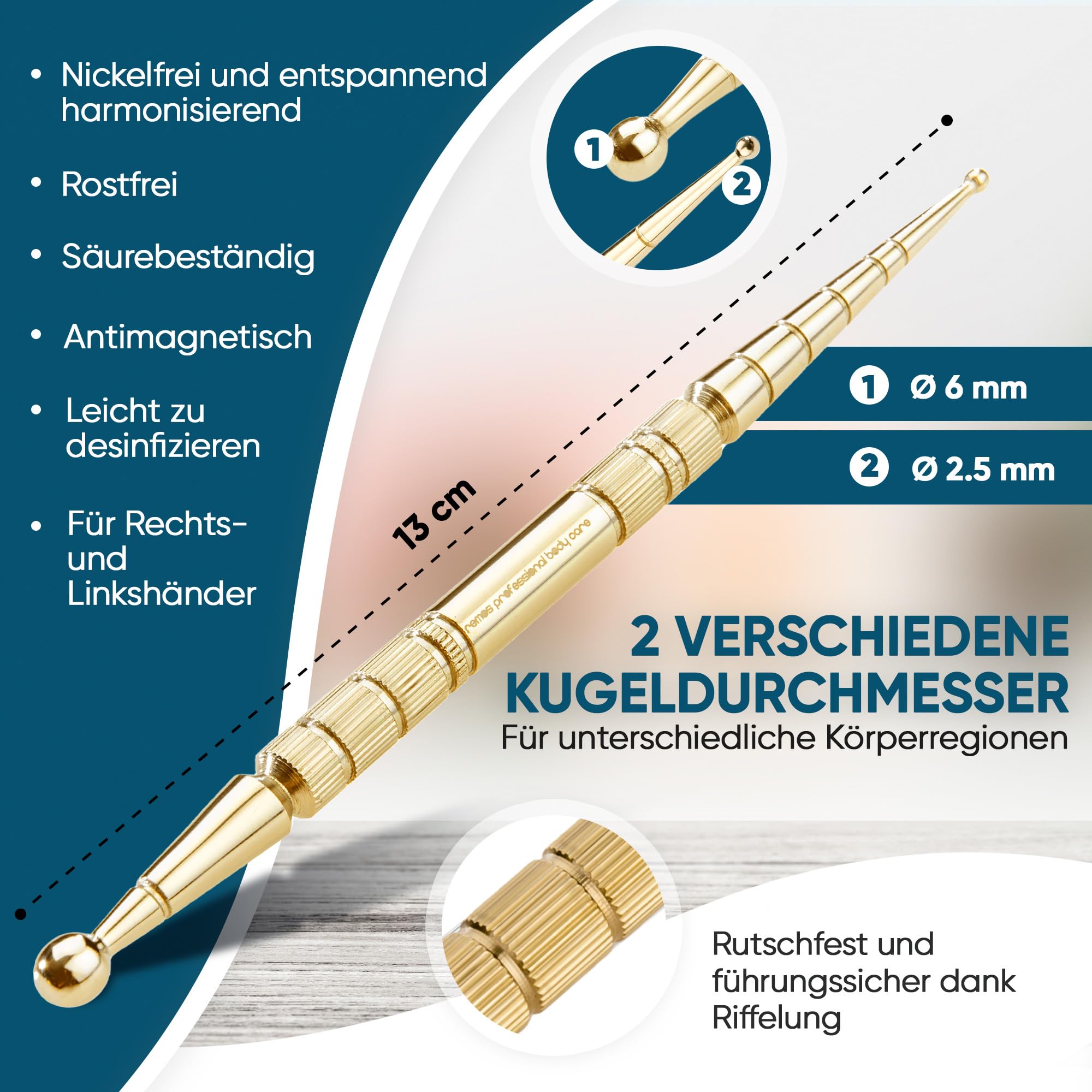 Remos sztyft do akupresury i meridianów, stal szlachetna, długość 13 cm, średnica kulki: 2,5 / 6 mm KugelØ 2.5/6.0 mm Messing
