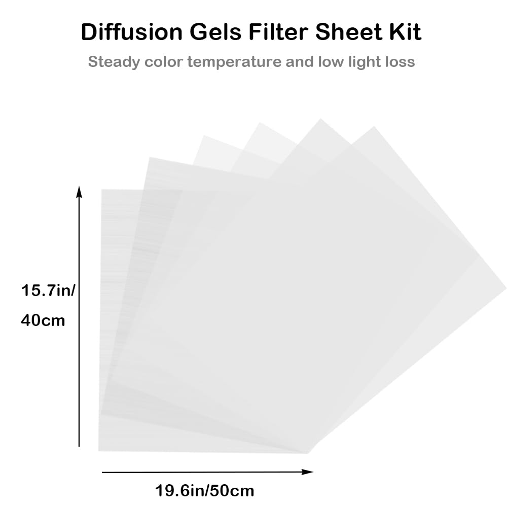 Zestaw arkuszy filtrujących żele dyfuzyjne, 40 x 50 cm, rolka dyfuzora światła do lampy błyskowej LED, 6 opakowań