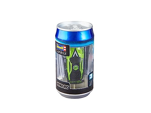 Revell Control 23560 Mini zdalnie sterowany samochód wyścigowy zielony, ze sterowaniem 40 MHz, w pojemniku na puszki, zawiera stożki drogowe, długość 8 cm