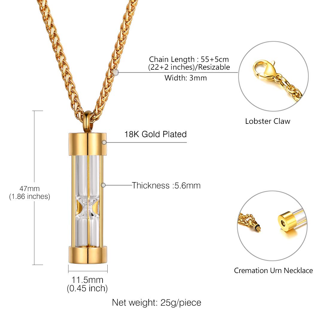 • Wzór: naszyjnik kremacyjny z klepsydrą, można otworzyć i umieścić w nim prochy; niezapomniana biżuteria pozwala pozostać ukochanym osobom blisko serca.