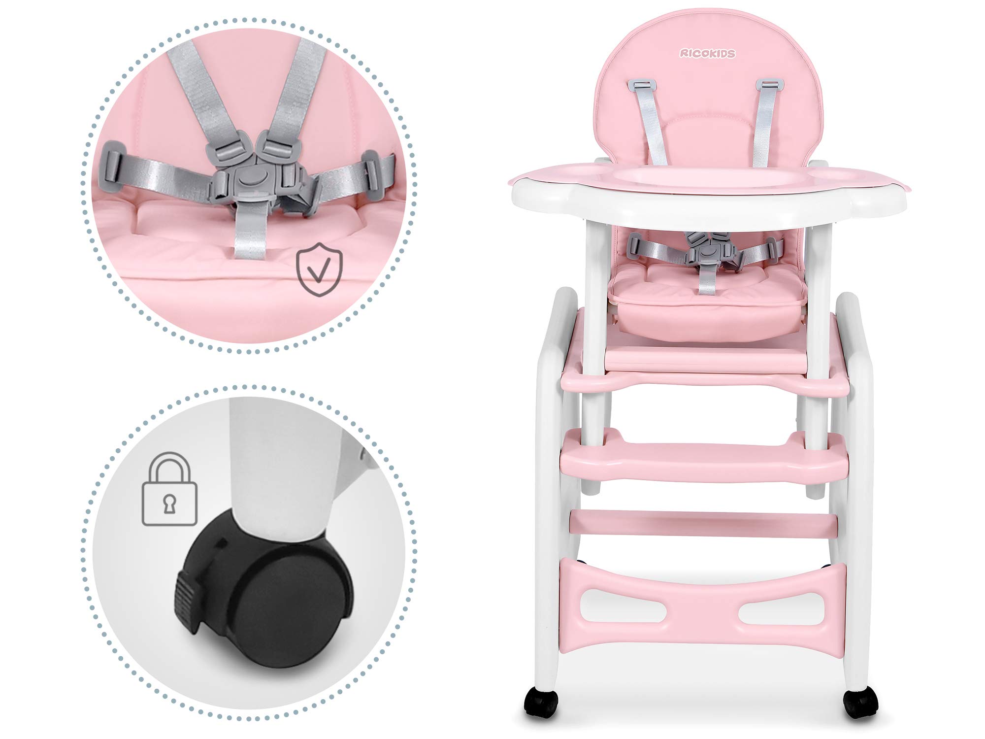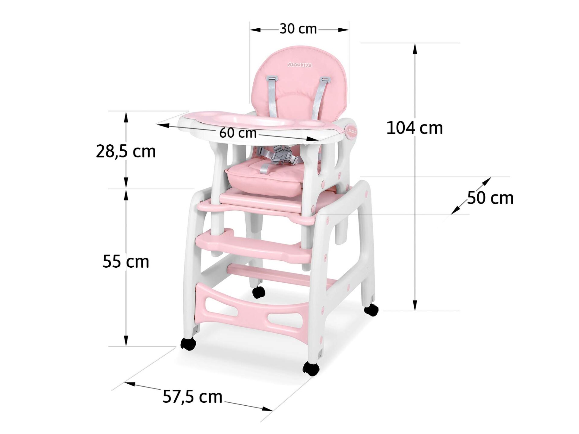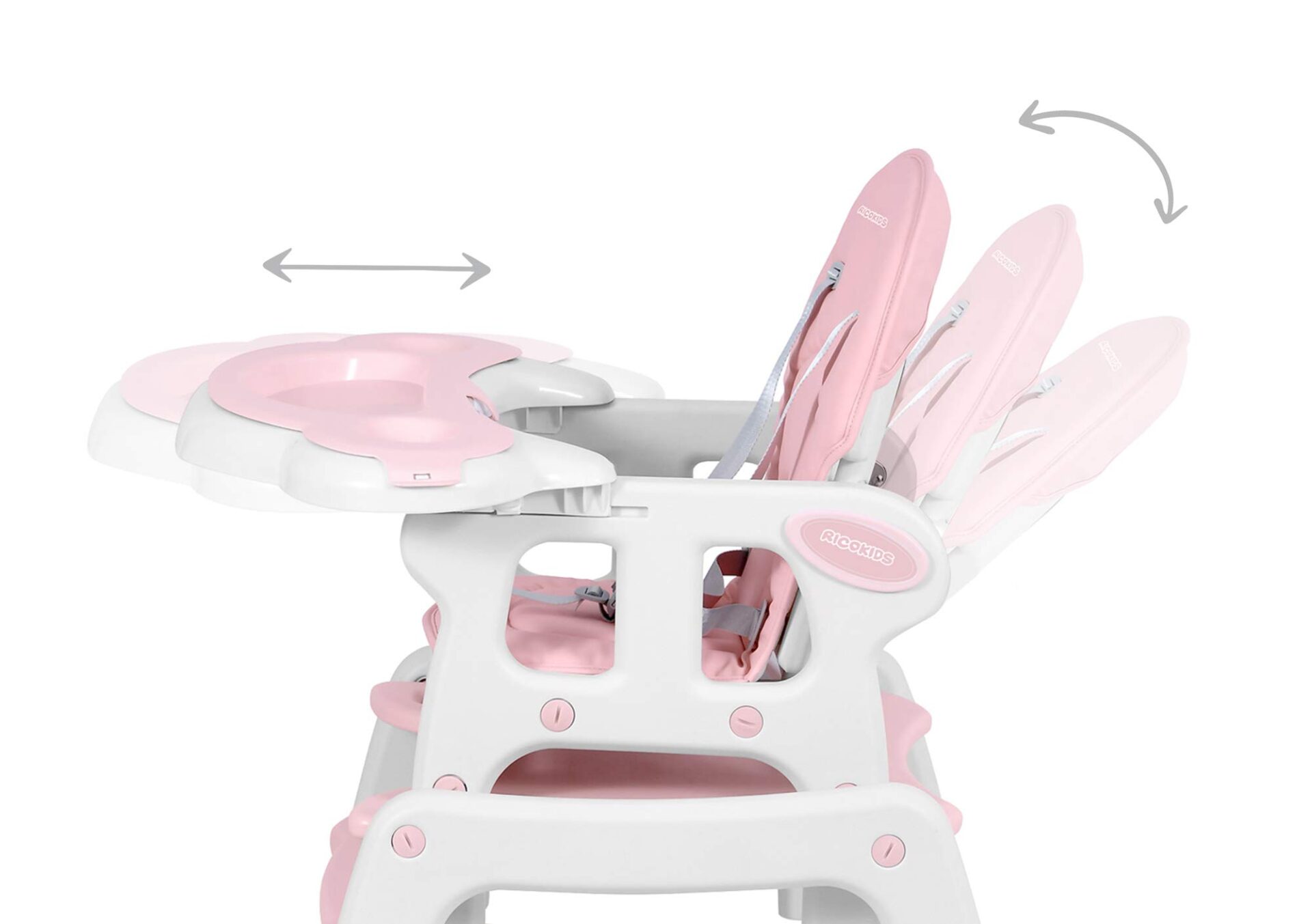 Wielofunkcyjne krzesło dziecięce 5 w 1 SINCO Ricokids Rosa to innowacyjny produkt, który łączy w sobie funkcjonalność, komfort oraz estetykę, co czyni go idealnym wyborem dla rodziców poszukujących wszechstronnych rozwiązań dla swoich pociech.
