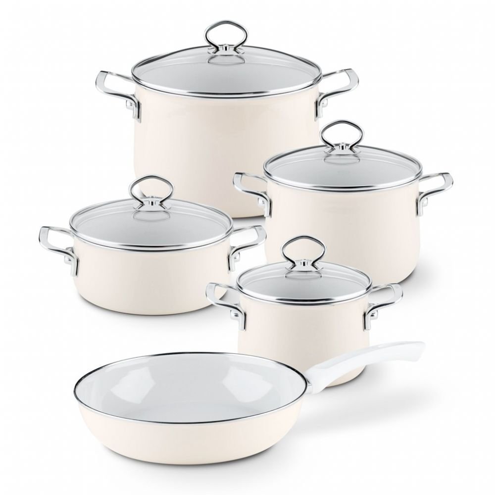 RIESS, 0558-011, zestaw emaliowy, NOUVELLE AVORIO EXTRA MOCNY, 5-częściowy, 4 garnki i jedna patelnia