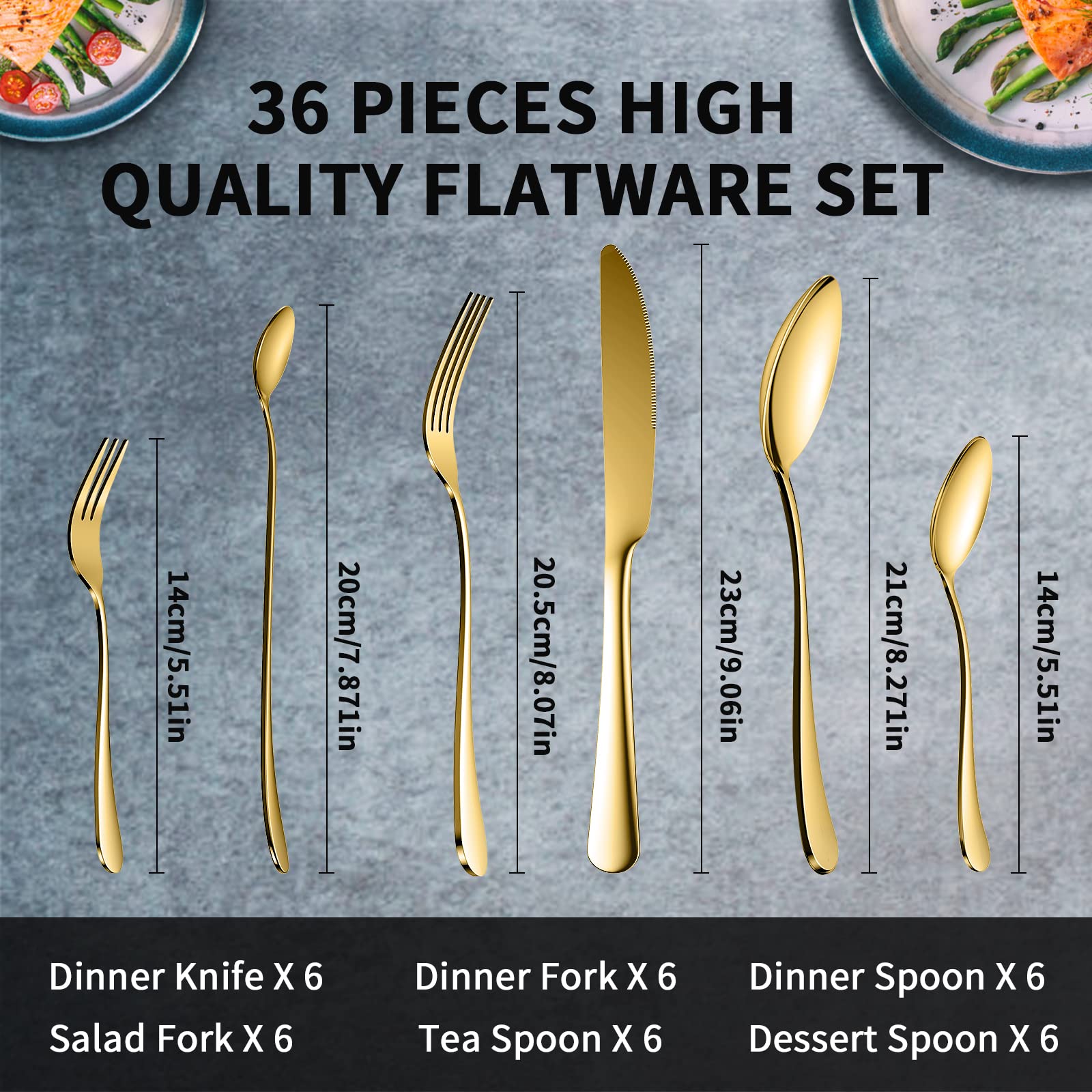 Zestaw sztućców RIWNNI dla 6 osób to elegancki i funkcjonalny 36-częściowy zestaw, który z pewnością wyróżnia się na tle konkurencji. Wykonany z wysokiej jakości stali nierdzewnej, sztućce charakteryzują się nie tylko trwałością, ale także wyjątkowym połyskiem, który nadaje im luksusowy wygląd. Polerowane na wysoki połysk, sztućce RIWNNI są nie tylko estetyczne, ale również odporne na korozję i zarysowania, co zapewnia długotrwałe użytkowanie.