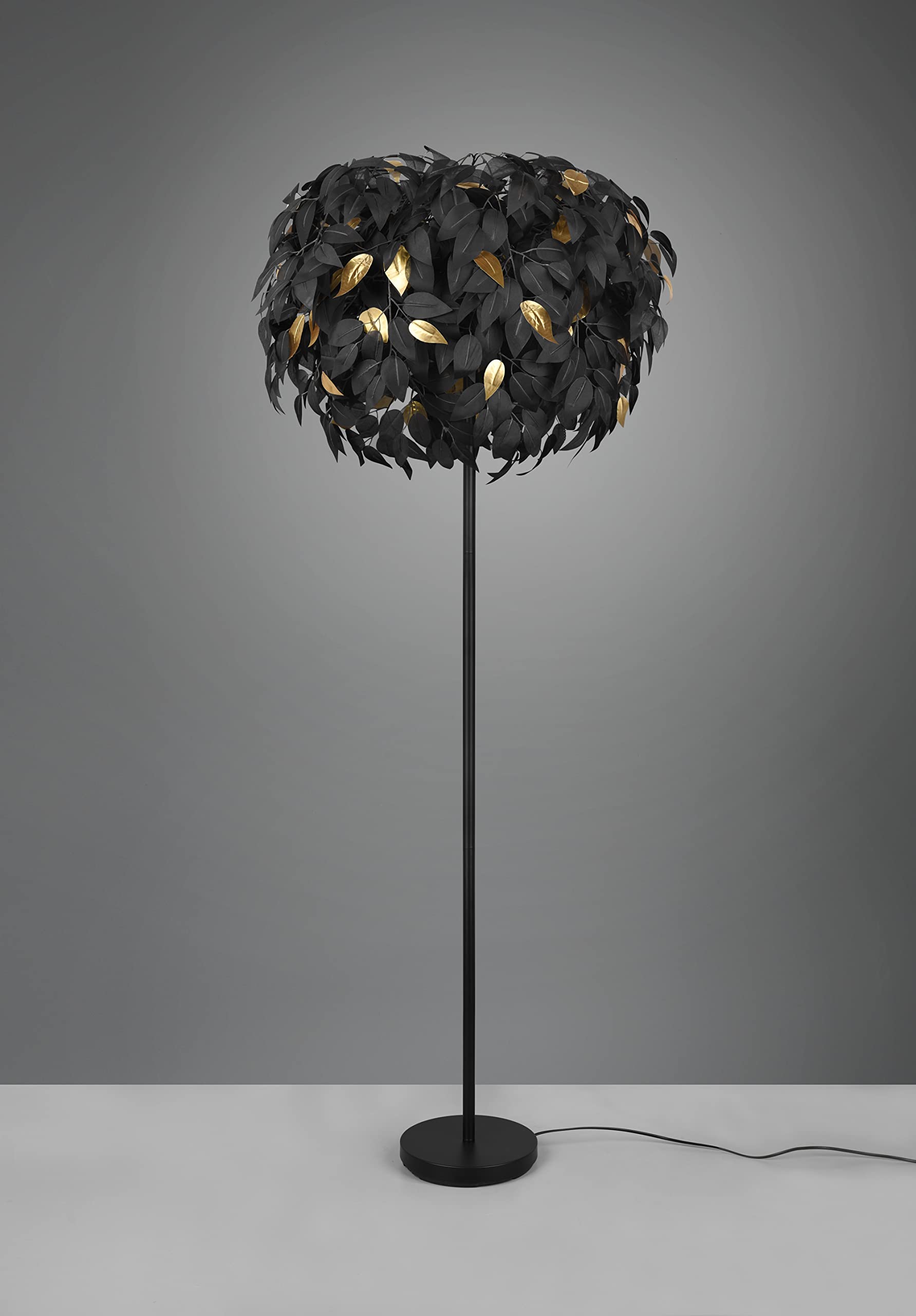✅ Leavy lampa podłogowa: Leavy lampa podłogowa z matowego czarnego metalu z plastikowymi liśćmi w kolorze czarnym i złotym