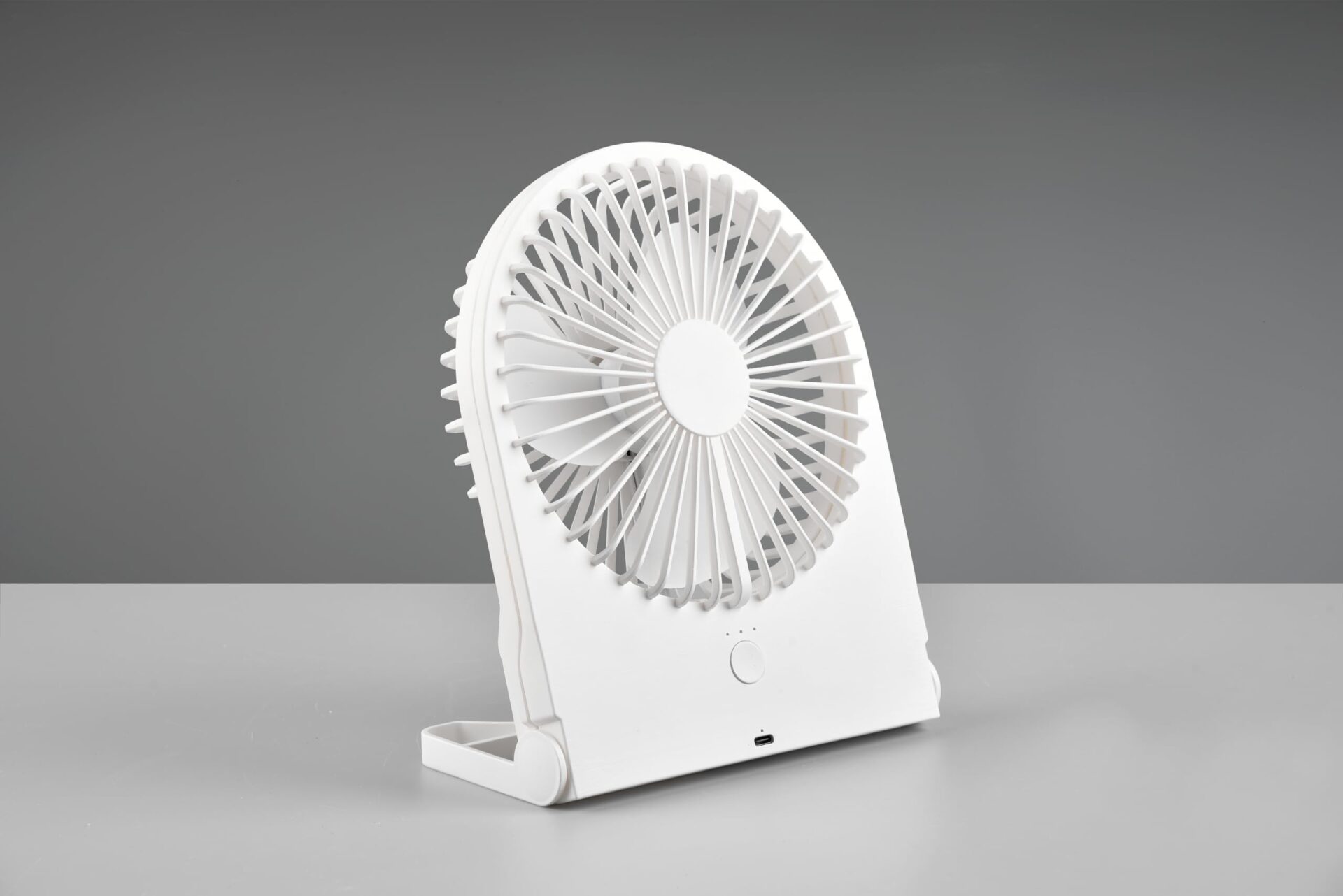 Reality Leuchten Breezy R044-01 wentylator stołowy, tworzywo sztuczne, biały matowy, 2 W, zasilanie bateryjne, USB-C, 3 stopnie