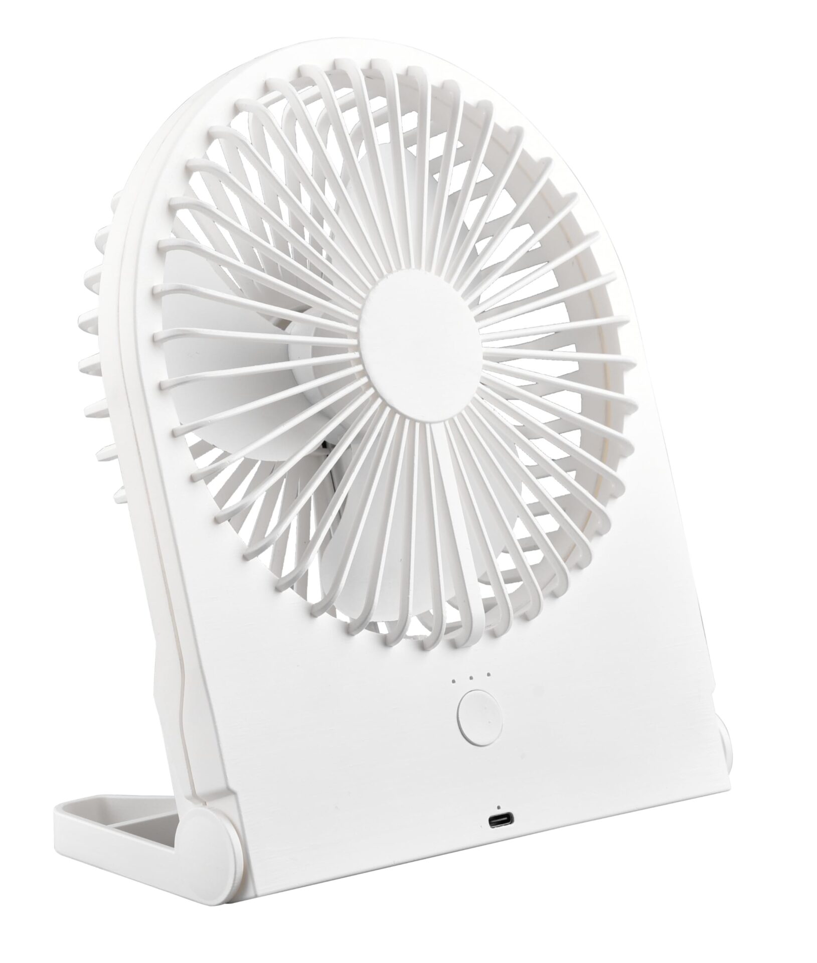 Akumulatorowy wentylator stołowy: Akumulatorowy wentylator stołowy Breezy z tworzywa sztucznego, biały, matowy, o wysokości 23 cm