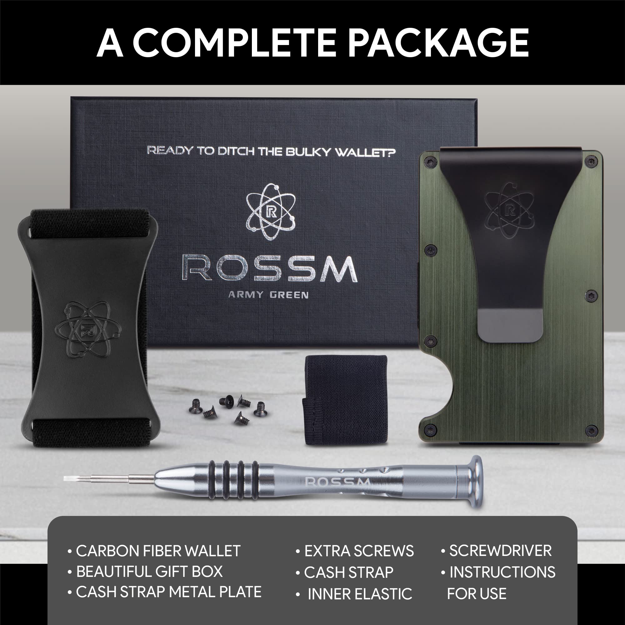Portfel męski ROSSM łączy elegancki design z funkcjonalnością. Dzięki unikalnemu połączeniu włókna węglowego i metalu, ten portfel oferuje nie tylko estetyczny wygląd, ale również niezwykłą wytrzymałość. Pomieści on do 12 kart, a dodatkowe miejsce na banknoty zapewnia elastyczna opaska, co czyni go idealnym towarzyszem w codziennym życiu.