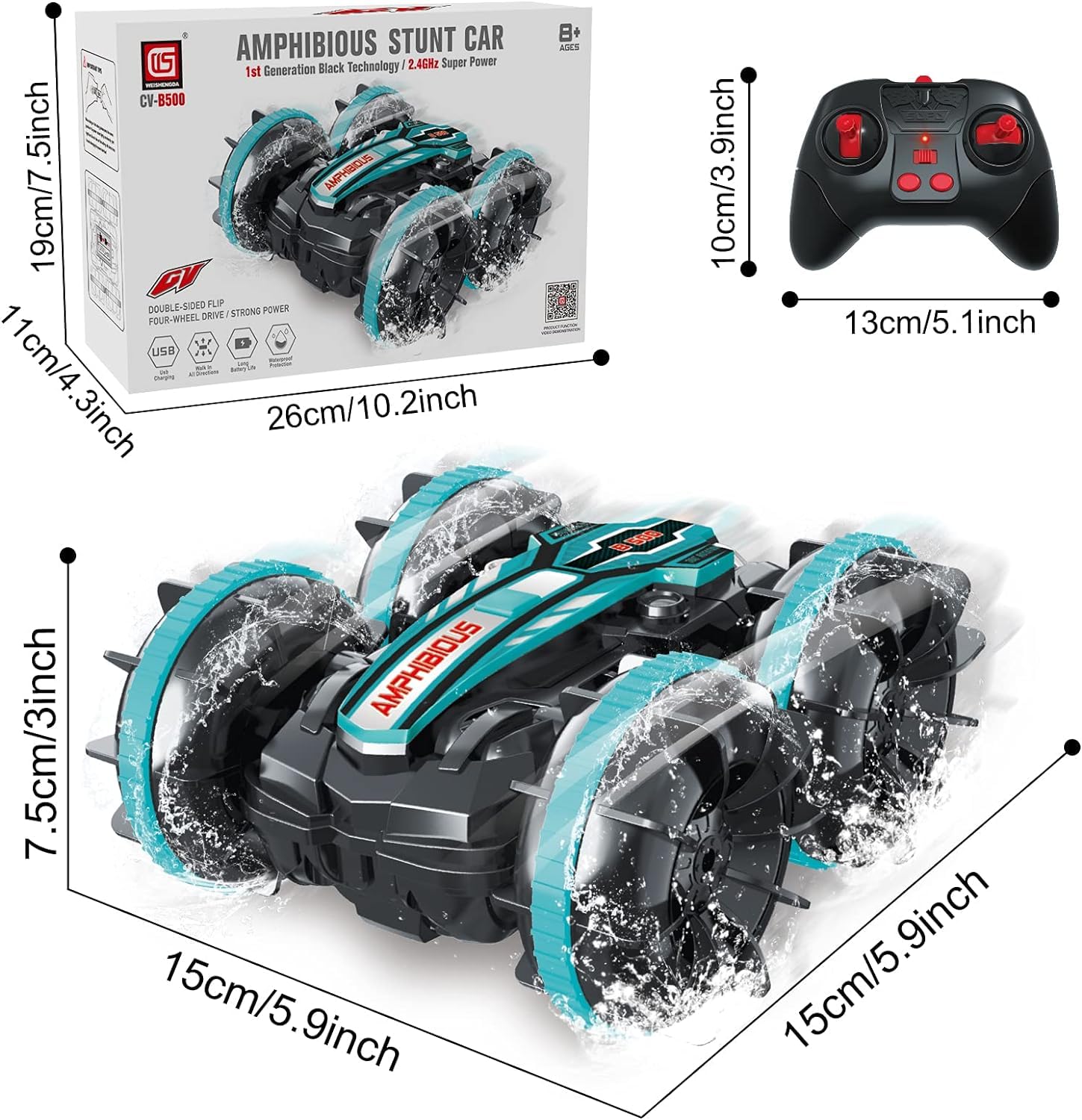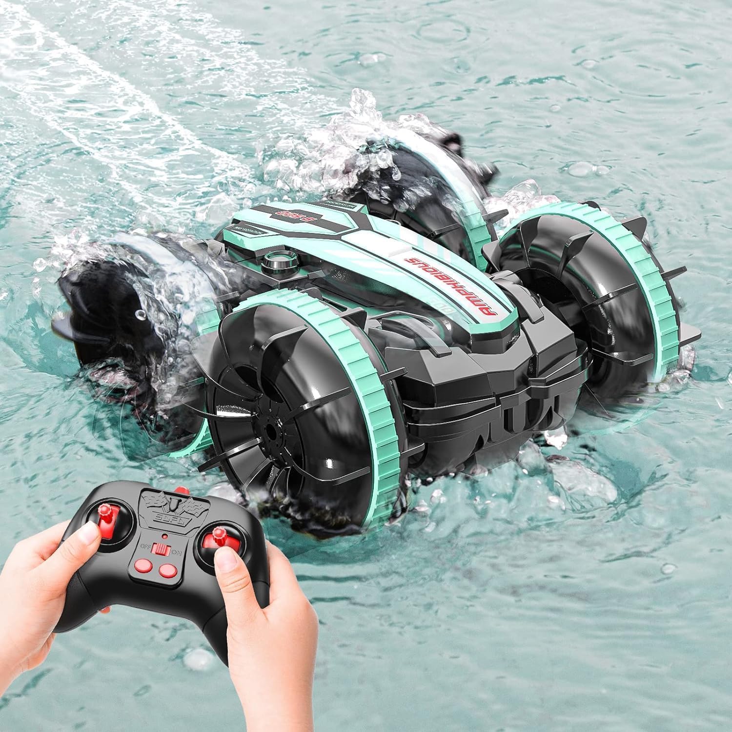 Dzięki napędowi na wszystkie koła i dwóm silnikom, samochód Amfibia jest w stanie poruszać się po różnych rodzajach terenu. Bez względu na to, czy jest to żwir, trawa, plaża czy śnieg, ten samochód RC poradzi sobie z każdym wyzwaniem. Dodatkowo, Amfibia może wykonywać różne akrobacje, takie jak driftowanie, 180-stopniowe skoki w przód i w tył, a nawet obrót o 360 stopni.