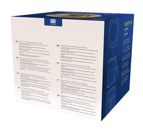 Jednym z najważniejszych aspektów frytkownicy beztłuszczowej Russell Hobbs jest jej cyfrowa obsługa. Dzięki intuicyjnemu dotykowemu panelowi, użytkowanie urządzenia jest niezwykle proste. Frytkownica oferuje 10 wstępnie ustawionych programów, takich jak: frytki, ryby, jajka, kurczak, warzywa, pieczenie, grillowanie, suszenie, rozmrażanie i podgrzewanie. Co więcej, otrzymasz również przypomnienie o konieczności przewrócenia jedzenia – sygnał dźwiękowy informujący o połowie czasu gotowania.