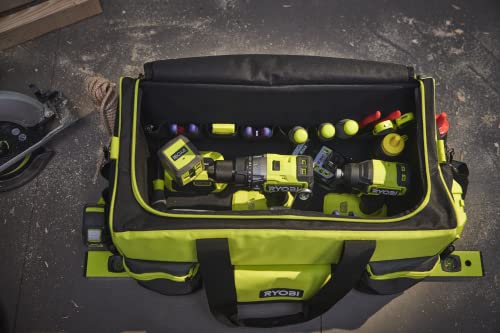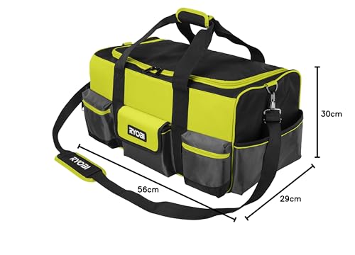 Ryobi Duża Torba na Narzędzia RSSLTB1 ze Wzmocnionym Dnem Paskiem z Wyściełanym Naramiennikiem i Wzmocnionymi Uchwytami Zamykana na Pojedynczy Zamek Błyskawiczny – to niezbędny dodatek dla każdego majsterkowicza, który ceni sobie wygodę, bezpieczeństwo i trwałość.