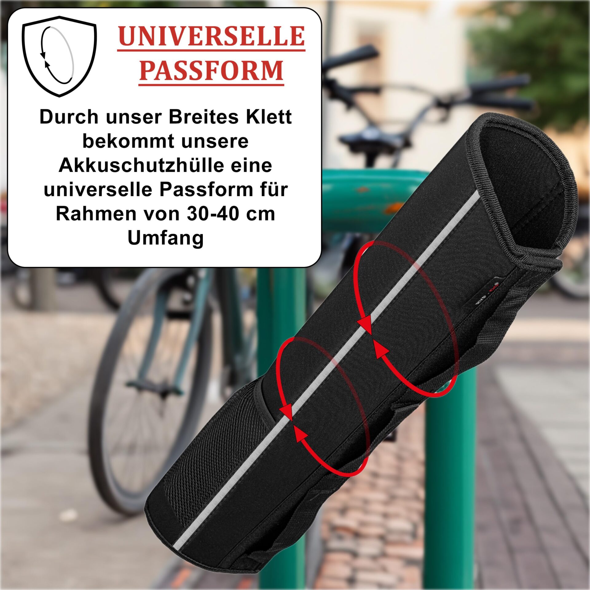 • Uniwersalne dopasowanie. Dzięki naszemu szerokiemu zakresowi regulacji możliwe jest wyposażenie wszystkich powszechnie stosowanych modeli rowerów, np. Kalkhoff, Giant, Cube, Haibike, jeśli ma obwód 30-40 cm.