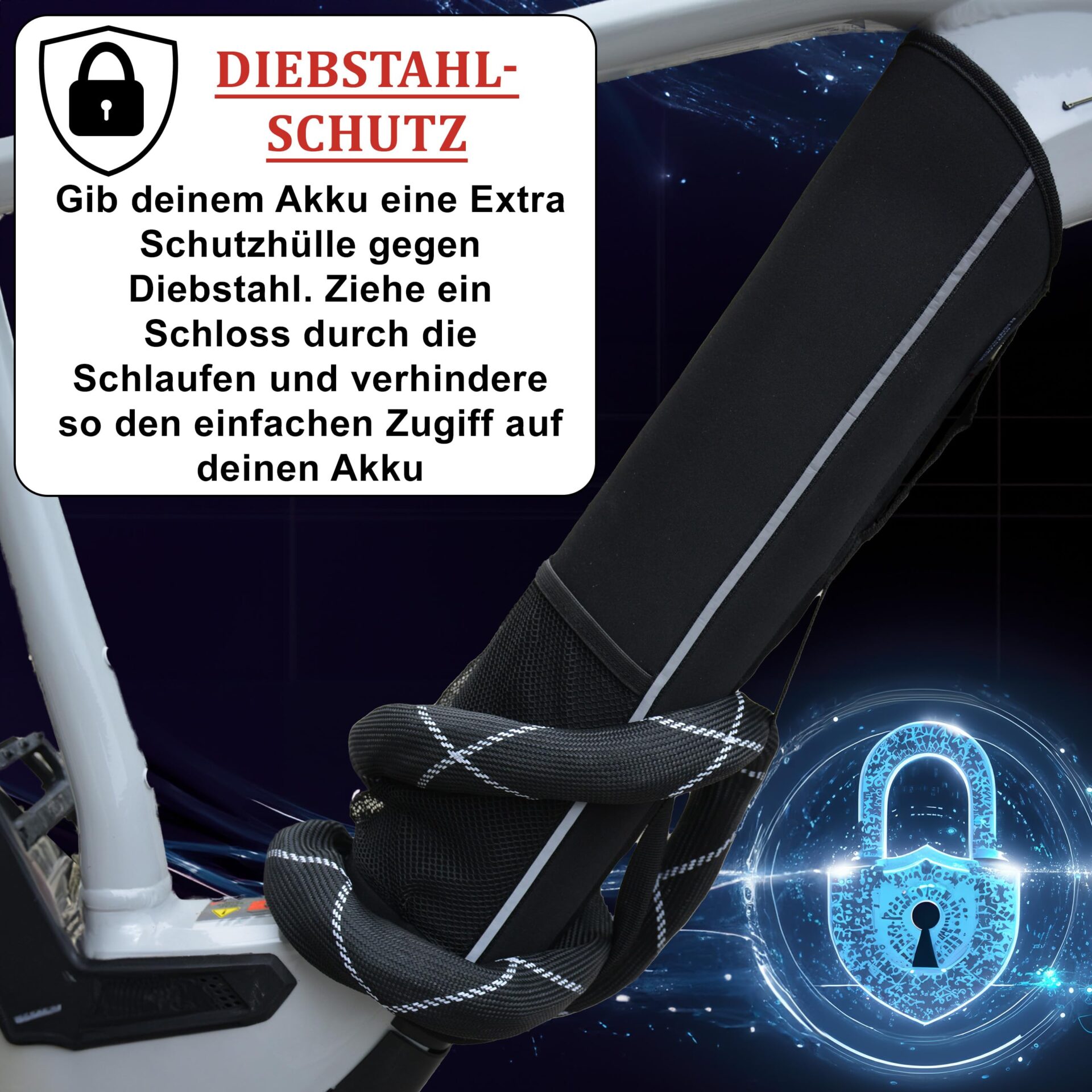 • Bezpieczeństwo: uchwyty mogą być również idealnie wykorzystane jako przepust do kabli lub zamków pałąkowych. Dzięki temu utrudnisz kradzież nowej pokrywy akumulatora, jak również wysokiej jakości akumulatora.
