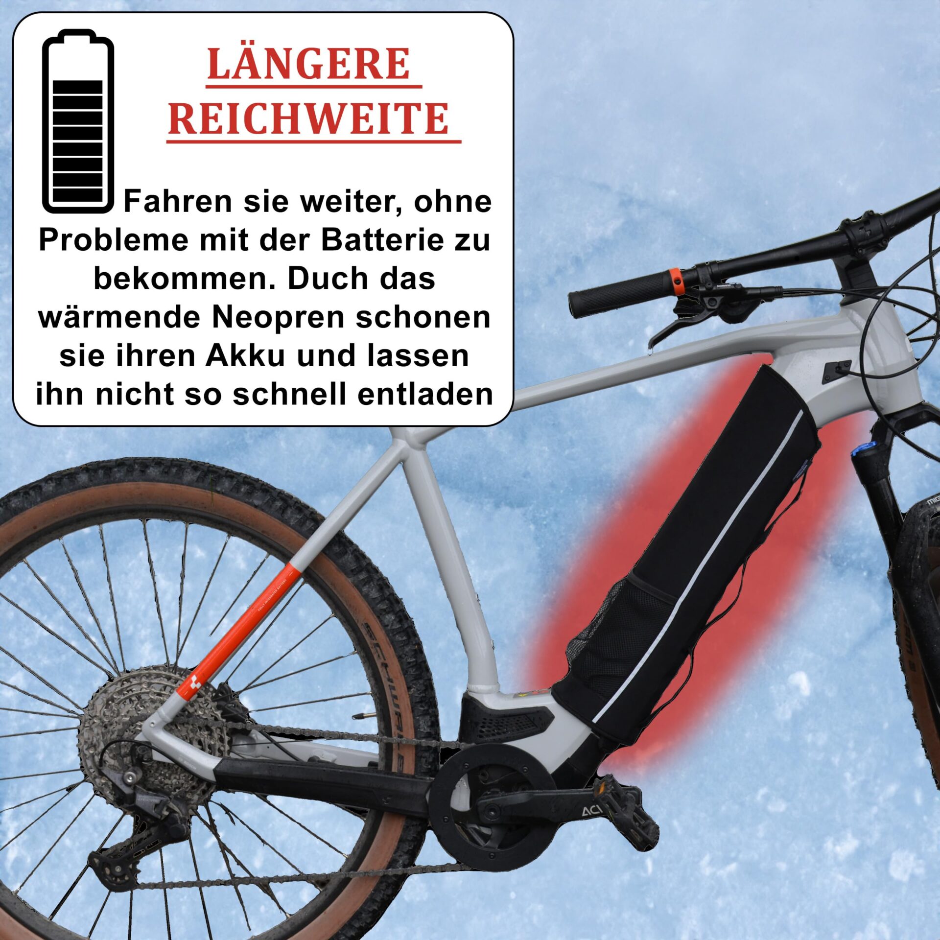 • Zwiększony zasięg Dzięki efektywnej powłoce neoprenowej o grubości 5 mm zapewnisz akumulatorowi wysokiej jakości ochronę przed zimnem, wilgocią, zabrudzeniami i uderzeniami kamieni. Cykle ładowania akumulatora są przedłużane w zimnych porach roku, co pozwala nie tylko zaoszczędzić na kosztach energii, ale także pomóc w efektywnym wykorzystaniu energii w środowisku naturalnym