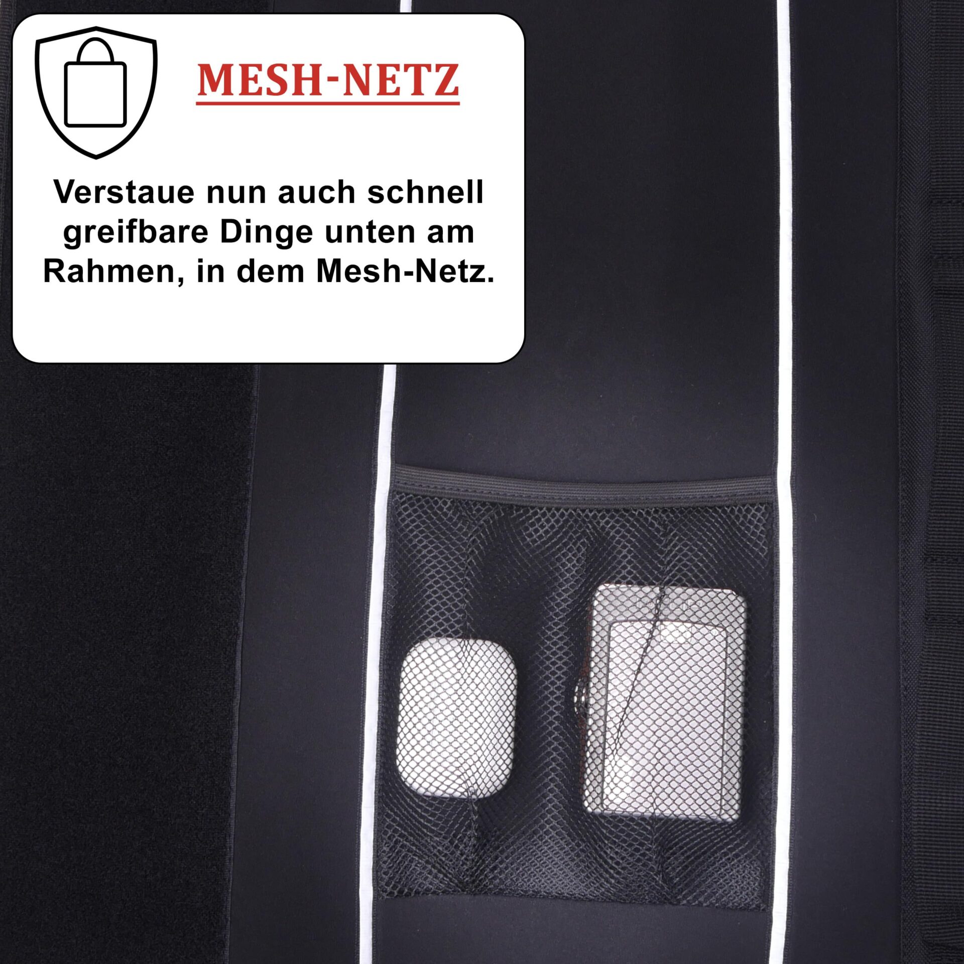 • Zalety pasków odblaskowych, naszyta kieszeń z siatki oraz uchwyty do łatwego mocowania pokrowca na ramie roweru, zapewniają najwyższy poziom bezpieczeństwa i komfortu.