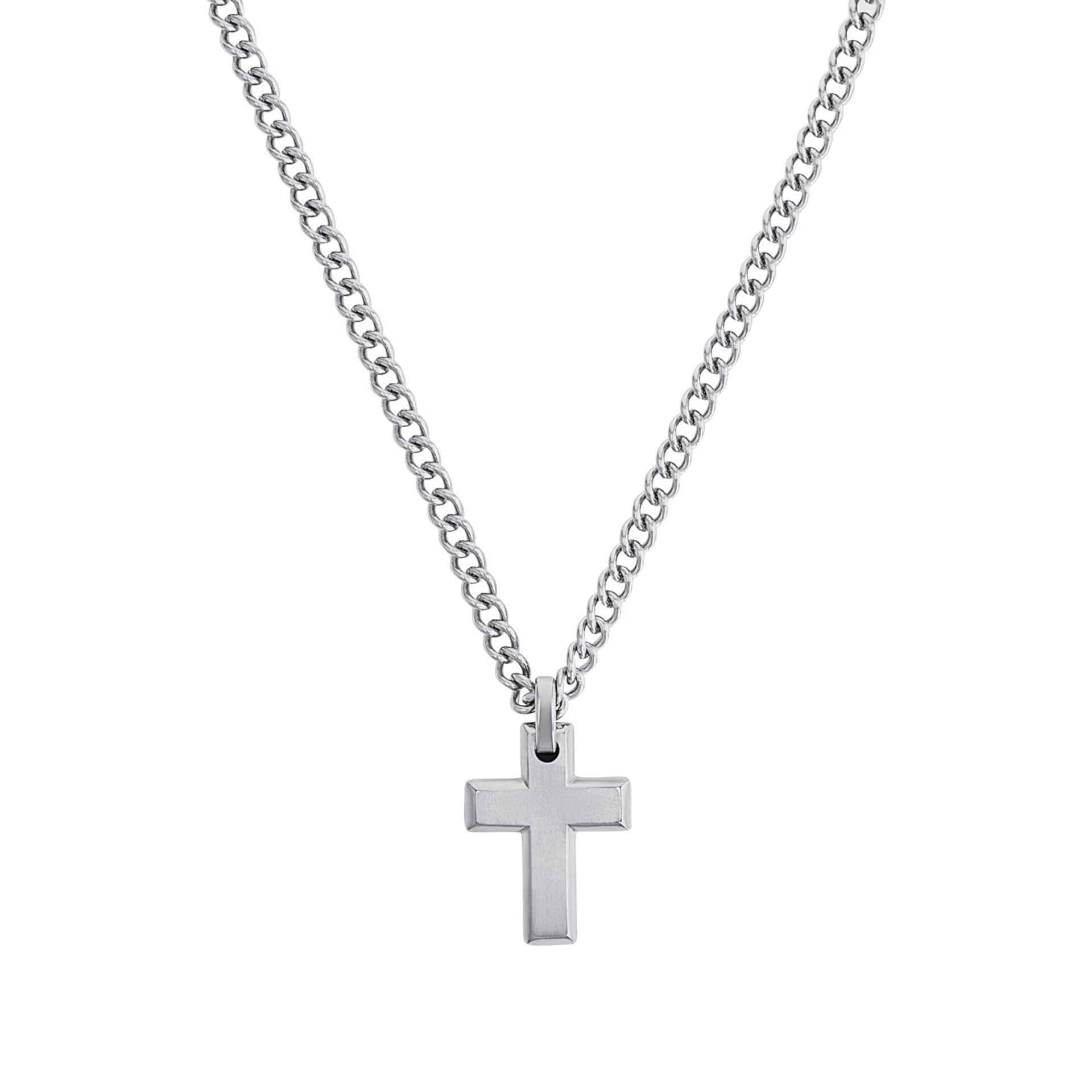 s.Oliver Naszyjnik męski z zawieszką w kształcie krzyża, zapakowany w ozdobne pudełko jubilerskie.