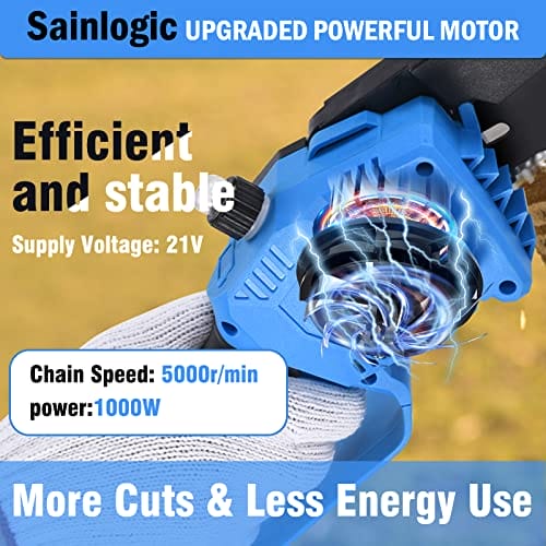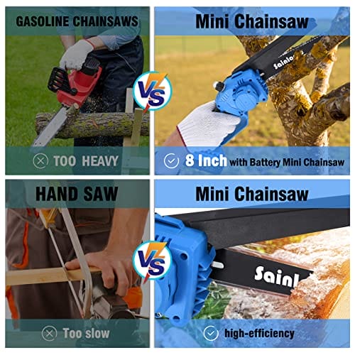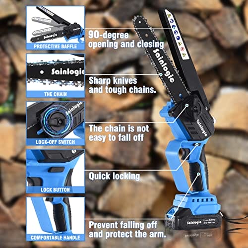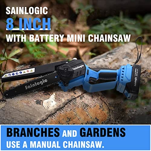 Sainlogic mini piła łańcuchowa Bateria Lekka piła łańcuchowa jedna ręka 8 cali Bateria elektryczna piła łańcuchowa jedna ręka z blokadą bezpieczeństwa baterii.