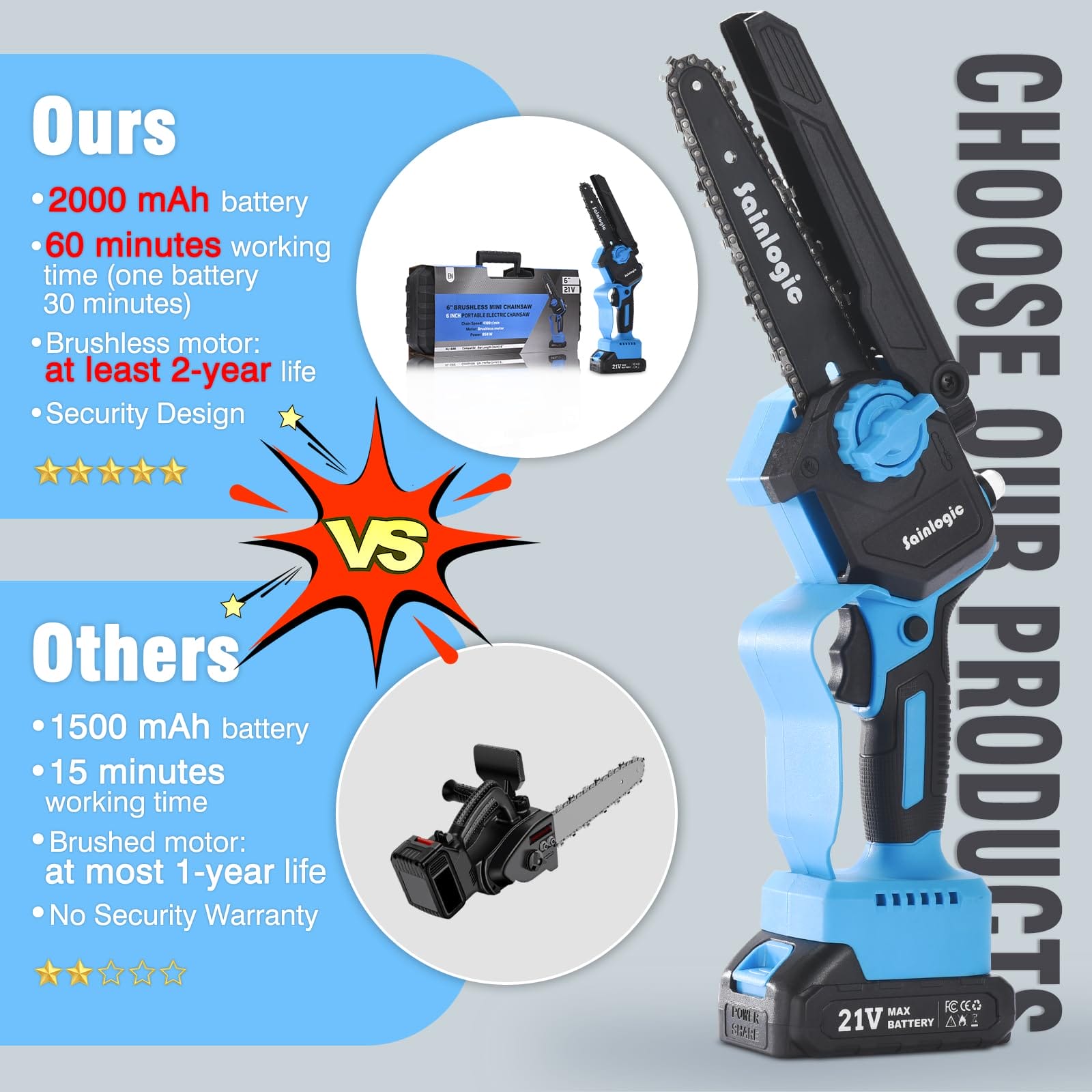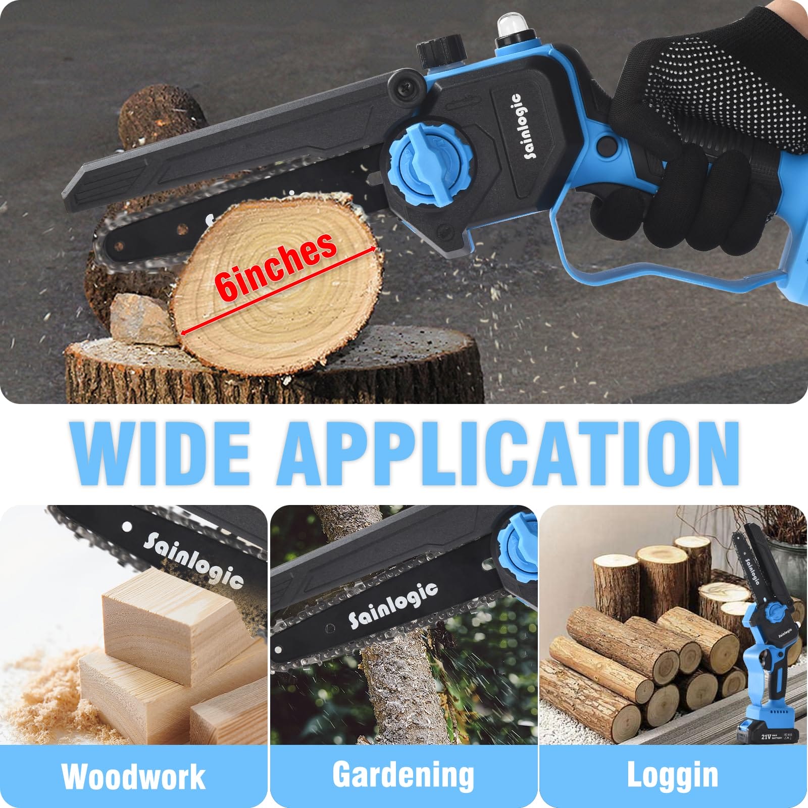 Sainlogic bezprzewodowa piła łańcuchowa 152 cm z akumulatorem – przenośna pilarka łańcuchowa do prac ogrodniczych i przycinania drzew.