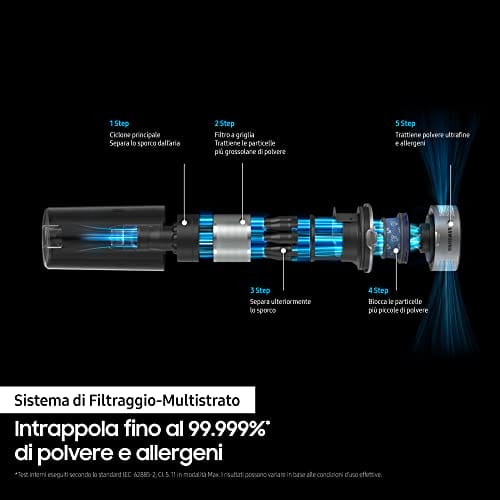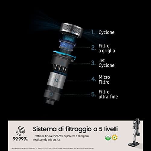 Jedną z najważniejszych cech tego odkurzacza jest jego zaawansowany system filtracji HEPA. Filtr HEPA zatrzymuje aż 99,99% cząstek kurzu i alergenów, zapewniając czyste powietrze w domu. Jest to szczególnie ważne dla osób cierpiących na alergie lub astmę.