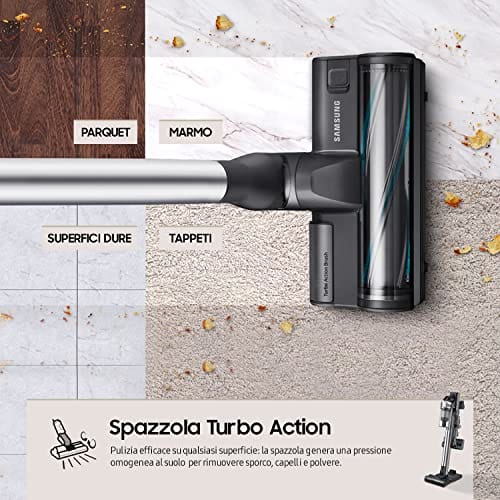 Samsung Odkurzacz bezprzewodowy Jet 90 Complete VS20R9046T3/ET Bez worka to innowacyjne urządzenie, które zapewnia kompleksowe i skuteczne odkurzanie różnych powierzchni. Oferuje wiele funkcji i cech, które sprawiają, że jest to idealne narzędzie do codziennego sprzątania.