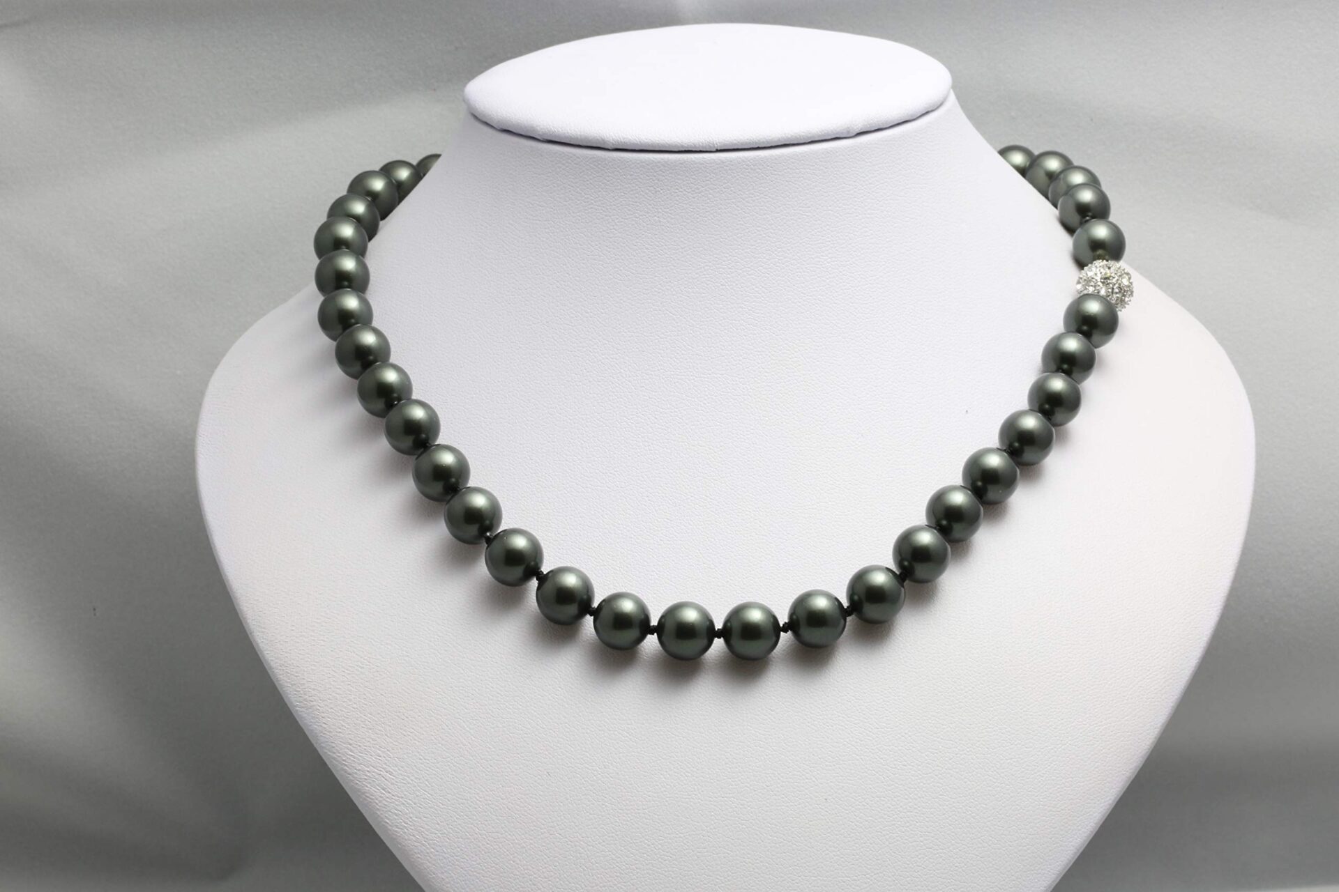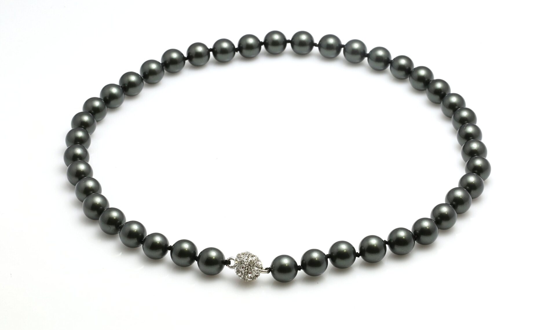 Naszyjnik damski z prawdziwymi perłami muszlowymi z Tahiti – zielony czarny, zapięcie magnetyczne MK003Z