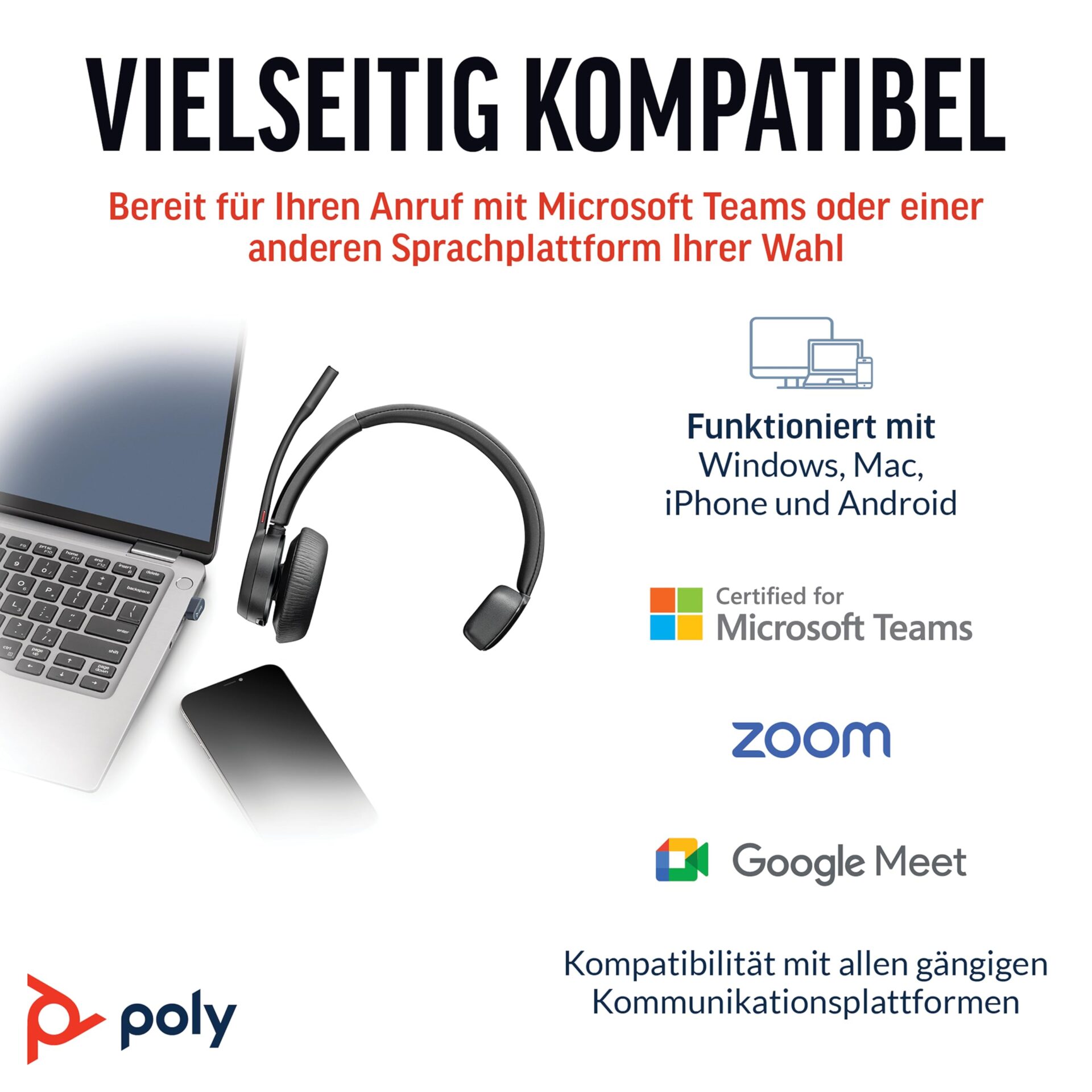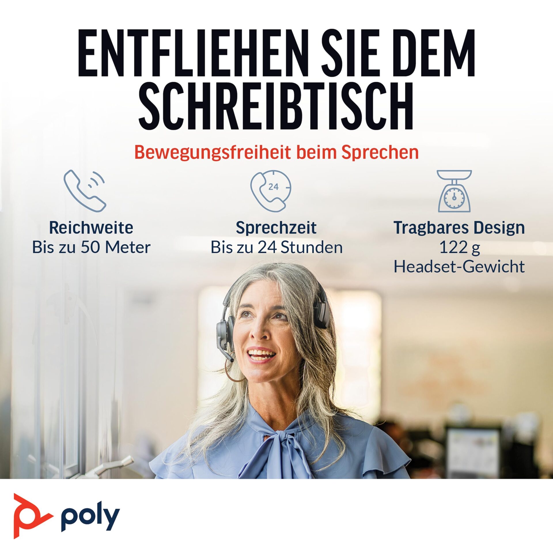 Poly Voyager 4310 UC bezprzewodowy zestaw słuchawkowy Bluetooth z ramieniem mikrofonowym z redukcją szumów – połączenie z komputerem PC/Mac/telefonem komórkowym przez Bluetooth – kompatybilny z