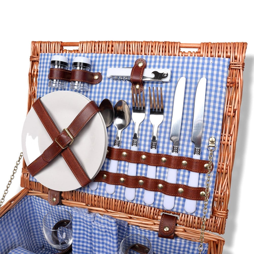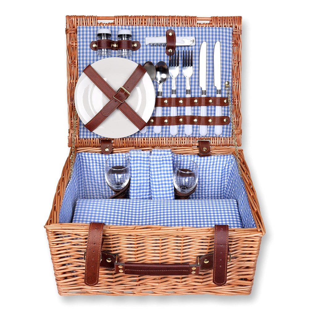 Kosz jest zaprojektowany specjalnie dla dwóch osób i zawiera wszystko, czego potrzebujesz do udanego pikniku. W zestawie znajdują się 2 porcelanowe talerze, 2 szklanki, 2 noże, 2 widelce, 2 łyżki, solniczka i pieprzniczka. Dodatkowo, kosz jest wyposażony w otwieracz do butelek, abyś mógł cieszyć się ulubionym napojem.