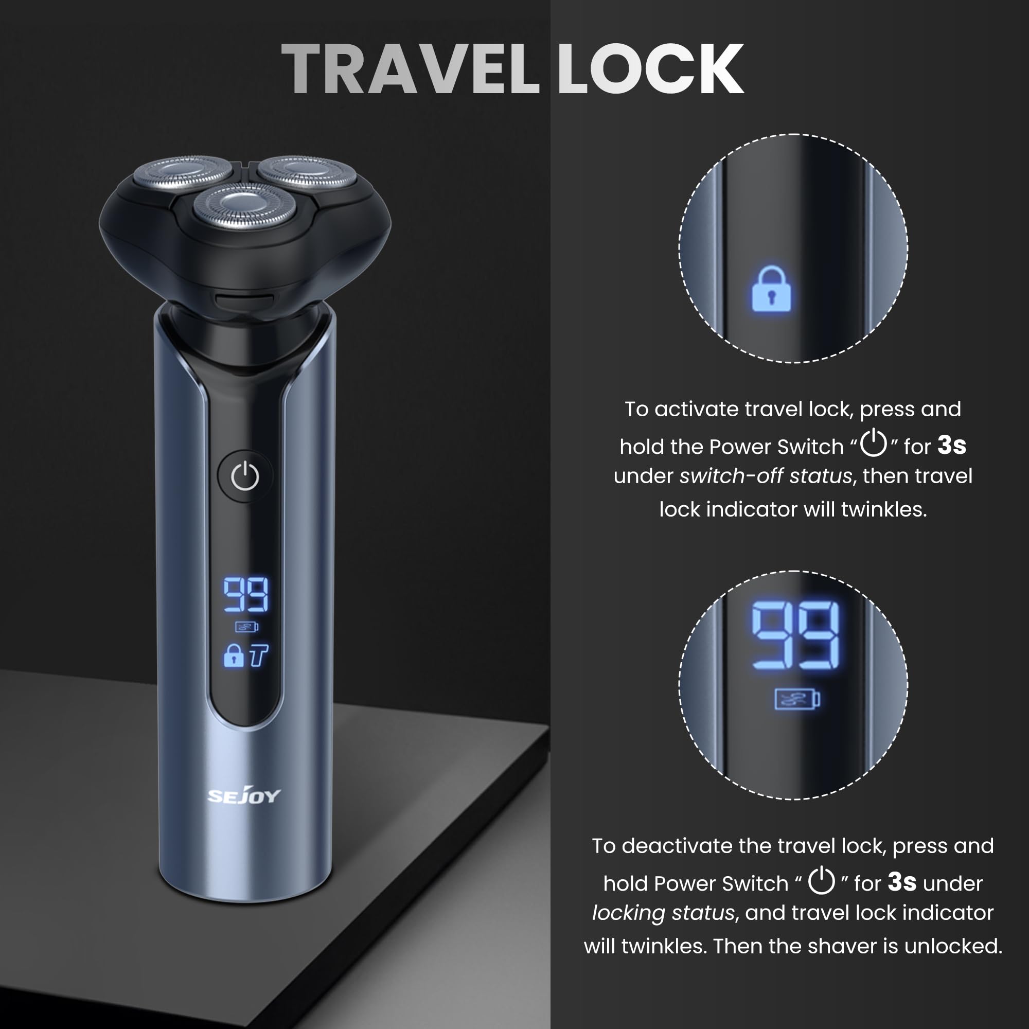 Sejoy Elektryczna golarka do twarzy wyróżnia się również długim czasem pracy na jednym ładowaniu – nawet do 180 minut. To sprawia, że jest idealna do podróży i zapewnia nieprzerwane użytkowanie przez długi czas.